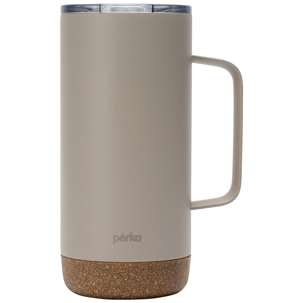 The impeccably designed Perka Kerstin 16 oz. 304 Stainless Steel Mug is a portable beverage container that was thoughtfully designed to keep your coffee warm for up to 10-hours. Add your company's custom logo to this great accessory, which features a clear push-in lid and easy-carry handle.