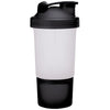 If you like supplements-fused drinks after a workout, you may end up falling in love with Valumark Black 16Oz Fitness Shaker Cup. Features two separate compartments. A screen releases the nutritional goodness from powder, fruits etc. It is customizable with a company logo and makes a perfect corporate giveaway for fitness businesses.