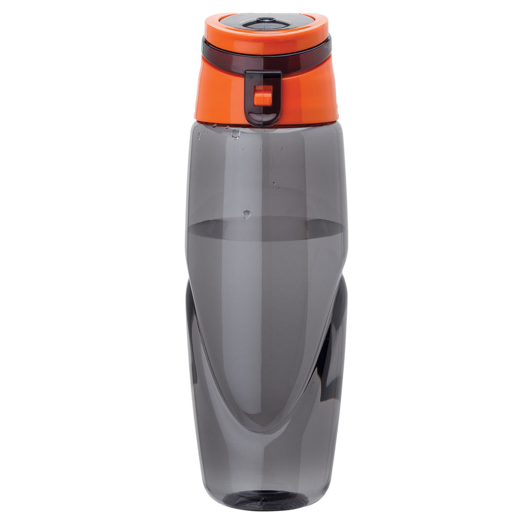 Sovrano Orange Conquest 32 oz. Tritan Water Bottle boasts a smoky body and colored sipper that brings on-the-go ease to hydration. Designed with integrated carry handle for secure grip. Promote your brand with this water bottle featuring strategic imprint area that will expose your logo or other custom graphics for maximum brand or event visibility.The minimum order for this product is 100 pieces