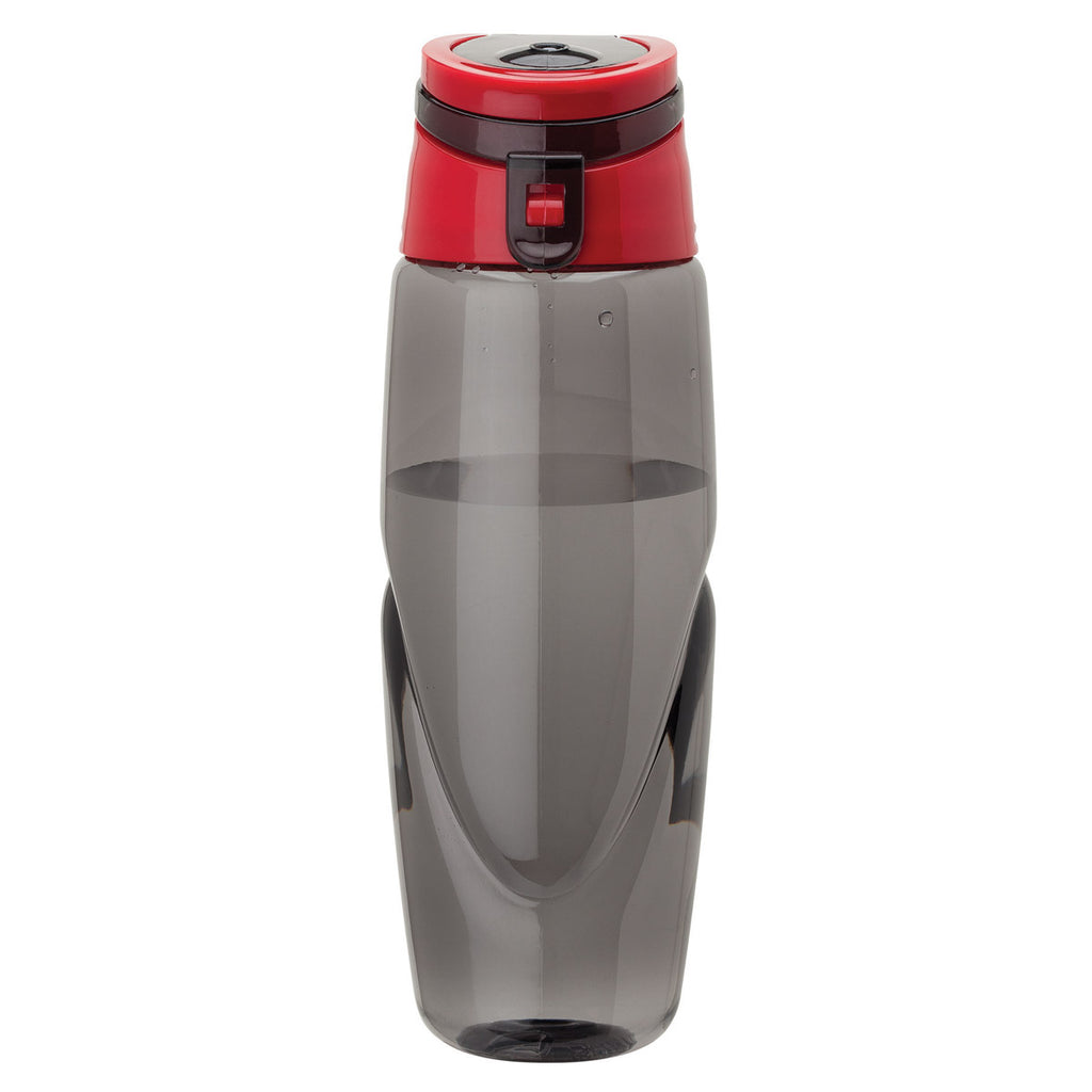 Sovrano Red Conquest 32 oz. Tritan Water Bottle boasts a smoky body and colored sipper that brings on-the-go ease to hydration. Designed with integrated carry handle for secure grip. Promote your brand with this water bottle featuring strategic imprint area that will expose your logo or other custom graphics for maximum brand or event visibility.The minimum order for this product is 100 pieces