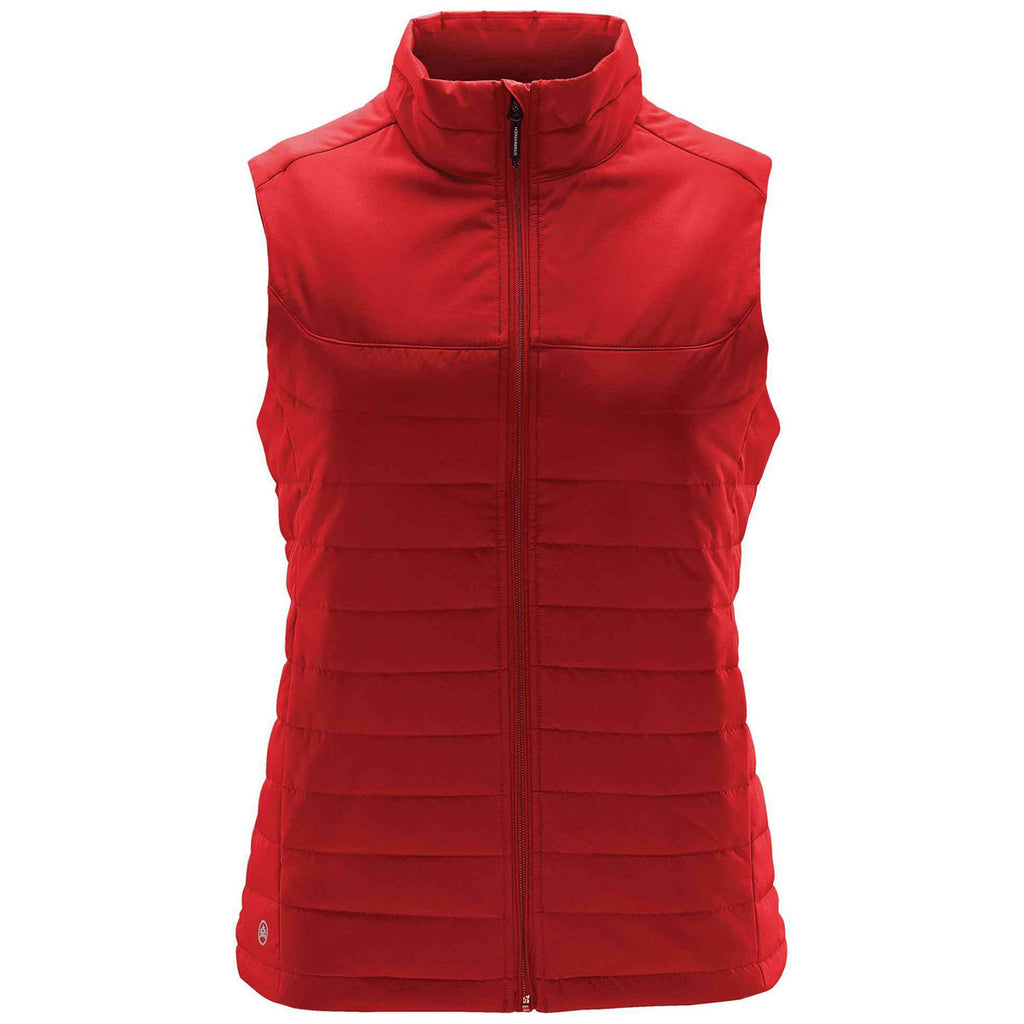 Long lasting thermal layering makes the custom logoed Stormtech Women's Bright Red Nautilus Quilted Vest the perfect winter jacket for outdoor enthusiasts that love to seek adventure during late fall and winter. The insulated layering traps body heat to ensure you remain comfortably warm on the coldest days. A lifted collar line does a great job of keeping the neck and lower face warm as well. Attach your company logo on the quilted jacket to attract more interest in what our brand has to offer. The rugged fabric resists the types of rips and tears that diminish the quality of other styles of winter jackets.Corresponding Men's Style: Stormtech Men's Bright Red Nautilus Quilted Vest