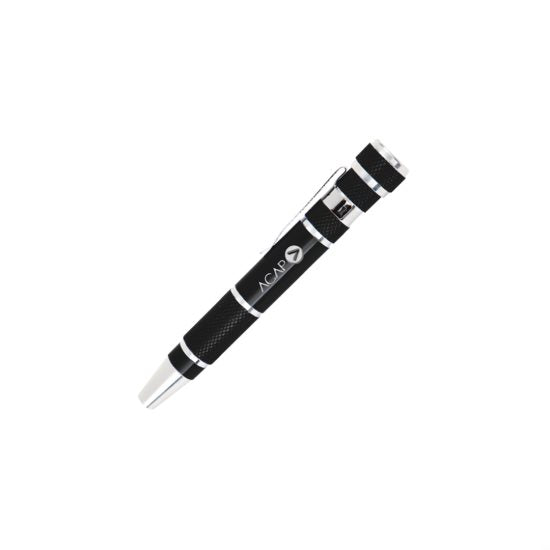 Add your company logo to what is truly a clever corporate gift or giveaway item-The K & R Black Pen Pocket. This screwdriver is designed to look like an everyday pen but stores the screwdriver heads inside. Available in several colors, it's a unique item to welcome new employees, thank valuable customers, and give away at events and conferences.