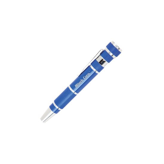 Add your company logo to what is truly a clever corporate gift or giveaway item-The K & R Blue Pen Pocket. This screwdriver is designed to look like an everyday pen but stores the screwdriver heads inside. Available in several colors, it's a unique item to welcome new employees, thank valuable customers, and give away at events and conferences.