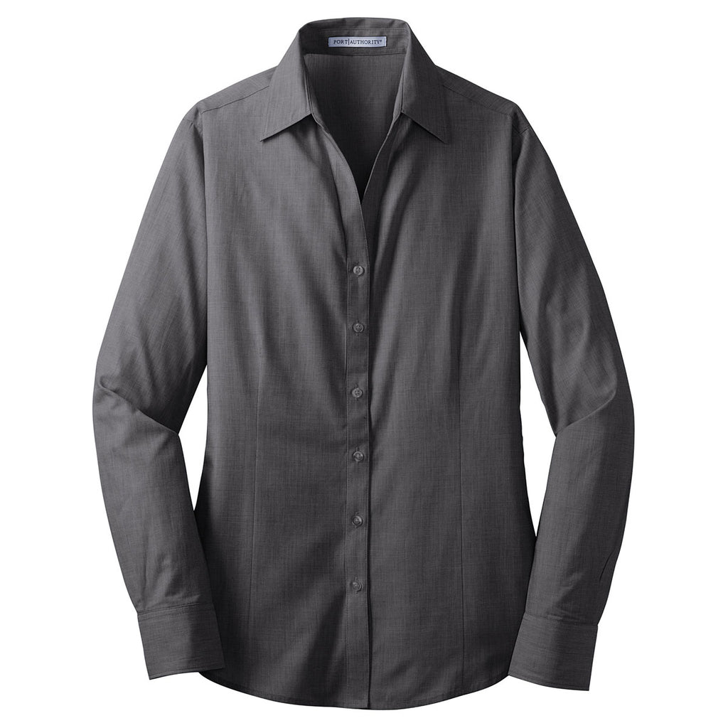 Dress shirts should be three things: stylish, comfortable, and professional. The Port Authority Women's Soft Black Crosshatch Easy Care Shirt fits all three. In fact, you'll find that these goals very much line up with your corporate goals, which is why this shirt is perfect for matching a sense of style with your individual brand. Create your business apparel by using our embroidery process to affix your logo to this shirt.Corresponding Men's Style: Port Authority Men's Soft Black Crosshatch Easy Care Shirt