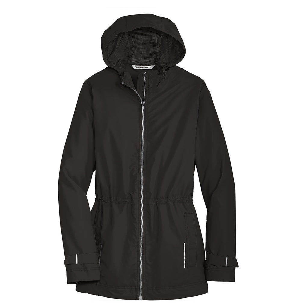 Why settle for an ordinary raincoat, when you remain warm and dry all the time by wearing the Port Authority Women's Black Northwest Slicker. One-hundred percent PU-coated polyester treats rain like an annoyance. Water droplets quickly form and roll off the jacket. Grommets under the arms encourage breathability and the polyester mesh interior circulates air to eliminate perspiration. The attachable hood stores easily in one of the front zippered pockets. The slicker makes an excellent gift for rewarding your team on employee appreciation day. Just remember to attach a custom logo that increases recognition of your company.Corresponding Men's Style: Port Authority Men's Black Northwest Slicker