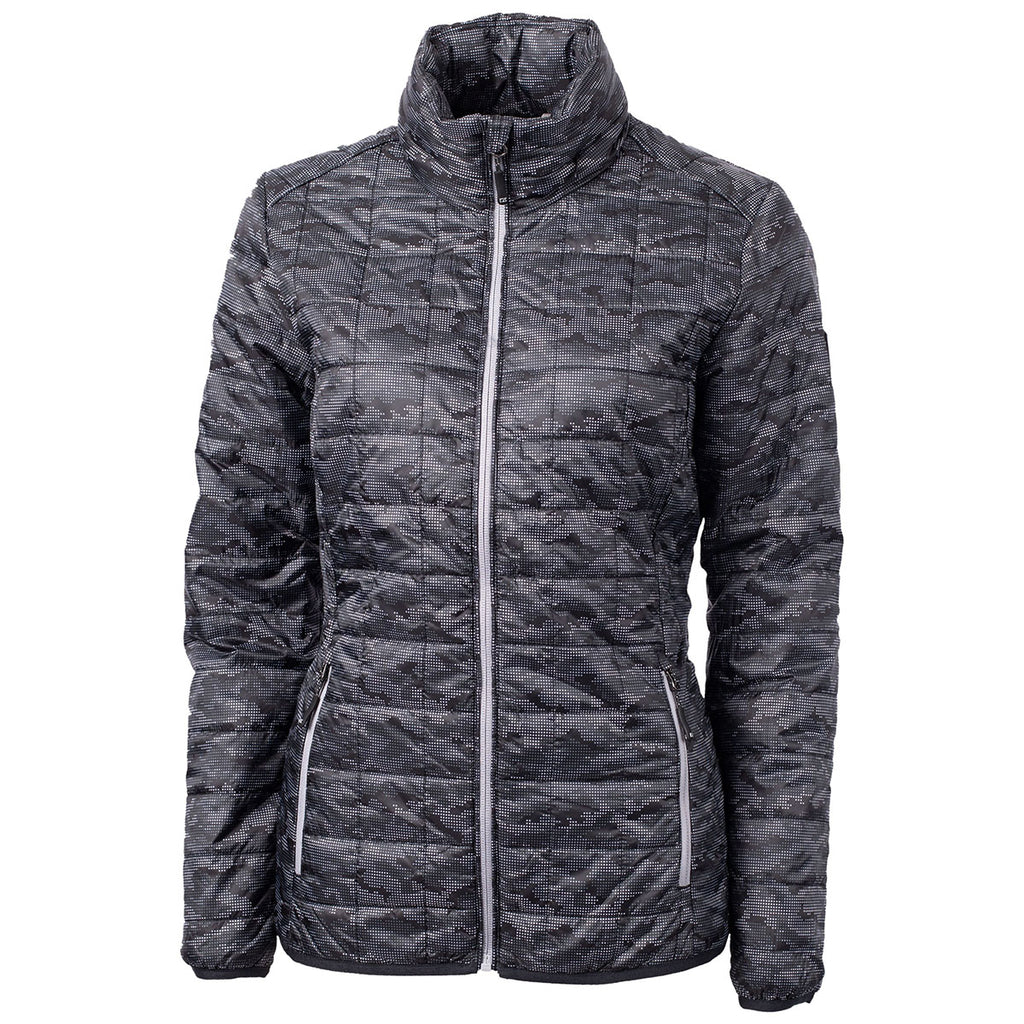 Cutter & Buck Women's Black Rainier Primaloft Eco Insulated Full Zip Printed Puffer Jacket