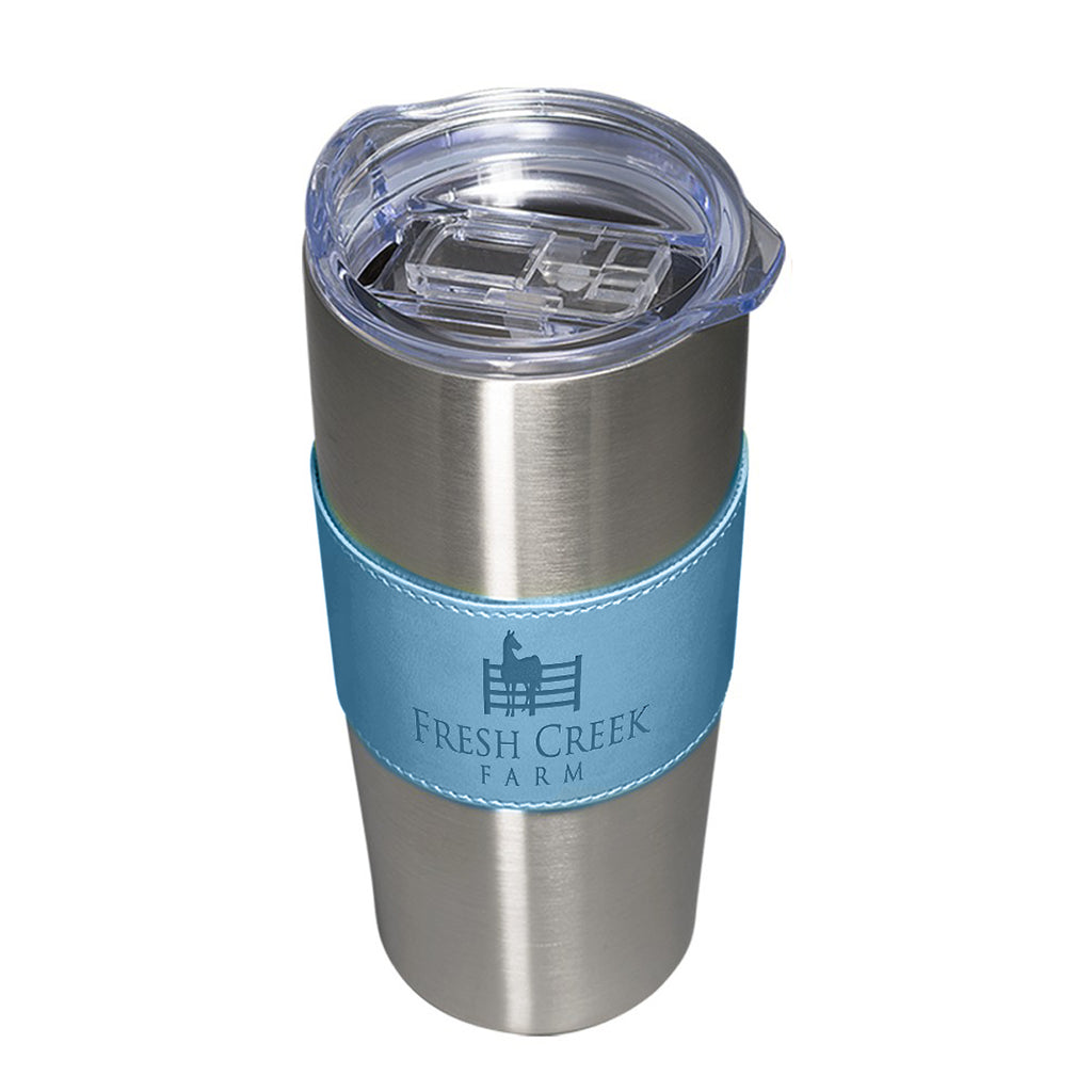Hydrate in style with Leeman Light-Blue Tuscany Vacuum Tumbler 20oz. featuring double-wall stainless steel construction and a contrasting leather sleeve grip accent for your custom logo imprint and slip-free portability. Everyone will just drink up your next marketing campaign with this reusable tumbler customized with your company name or logo.The minimum order for this product is 25 pieces.