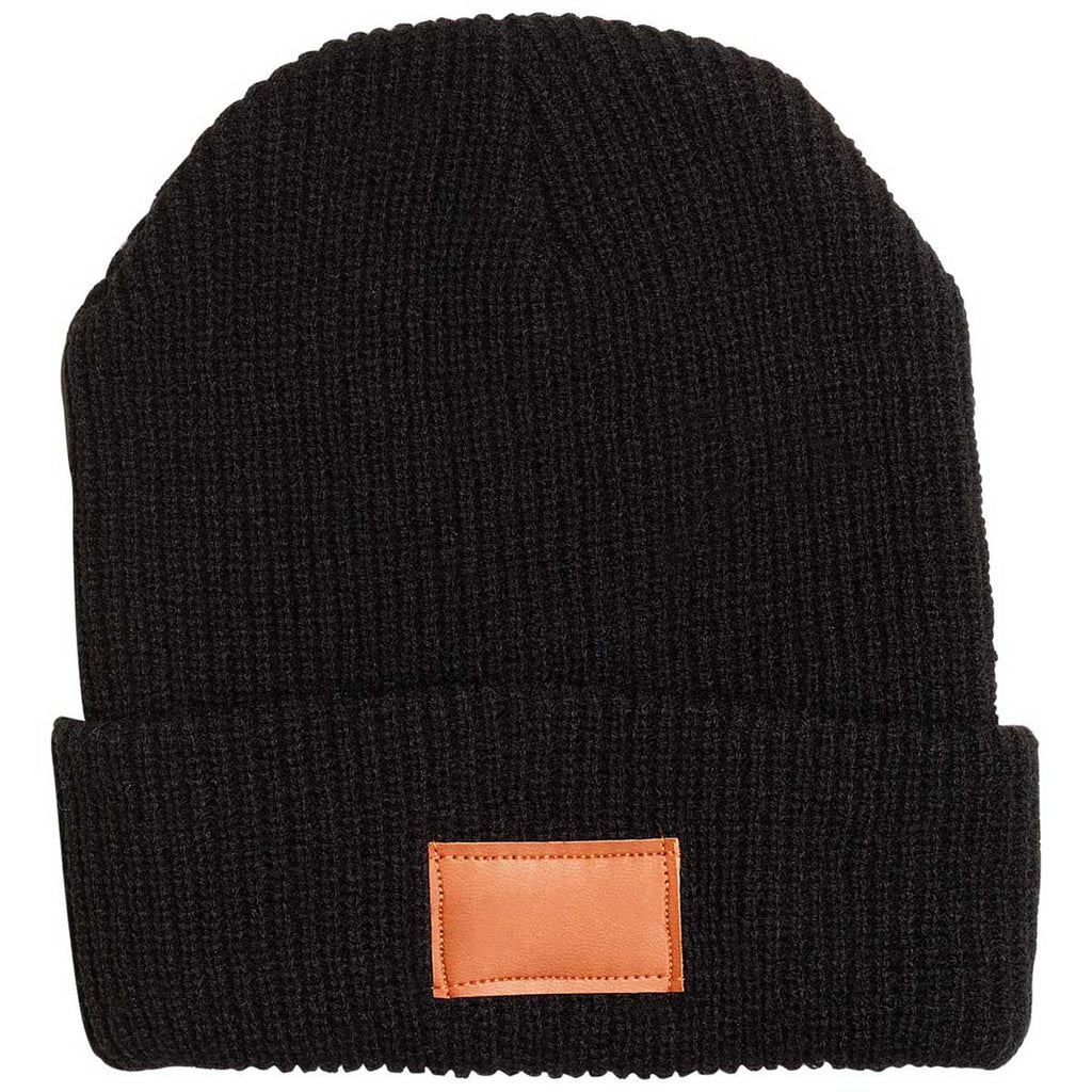 - 100% Acrylic rib knit beanie with PU faux leather patch on front cuff
