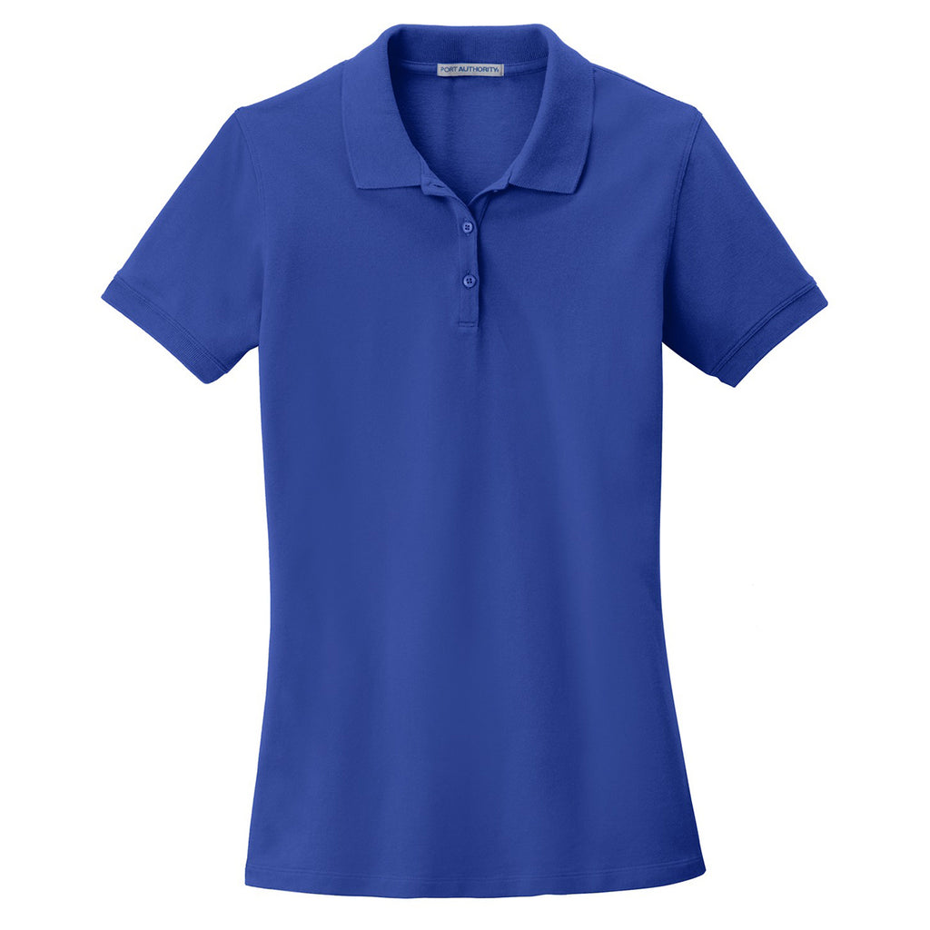 No one said the embroidered Port Authority Women's True Royal Ezcotton Polo was easy to make. The result of the meticulously designed polo is a soft and smooth fabric that contains 100% cotton pique material to keep you comfortable throughout the day. Wear the multi-purpose polo to a trade show and keep it on after the event at a corporate cocktail party. Side vents circulate air to cool the body and dyed-to-match buttons create a stunning appearance that is the fashion hit of the next civic event. Add a custom logo to the large imprint area to generate buzz for your company everywhere you go.Corresponding Men's Style: Port Authority Men's True Royal Ezcotton Polo