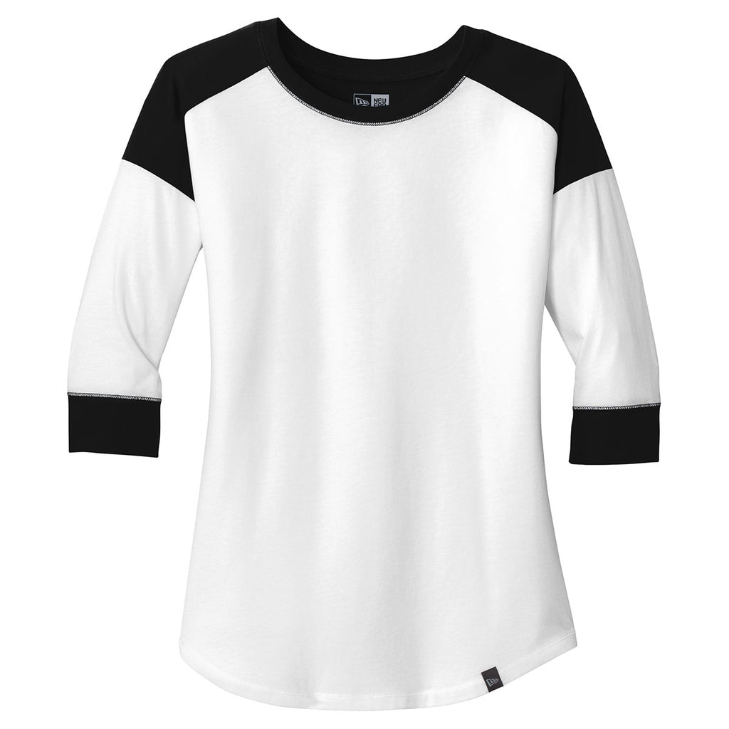 Class heritage styles heavily influences the appearance of stylish custom logoed New Era Women's Black/White Heritage Blend 3/4 Sleeve Baseball Raglan Tee. With a scalloped hem and shoulder and back yoke color blocking the all-purpose tee is a fashion hit during business trips. Attach your corporate logo to let everyone know your company stands for delivering high-quality products. Cotton brings to the fashion table supreme comfort, while blended polyester resists rips and tears to give you a go to tee for all occasions. Raglan sleeves create more arm motion, which helps you reach difficult to access areas of your property.