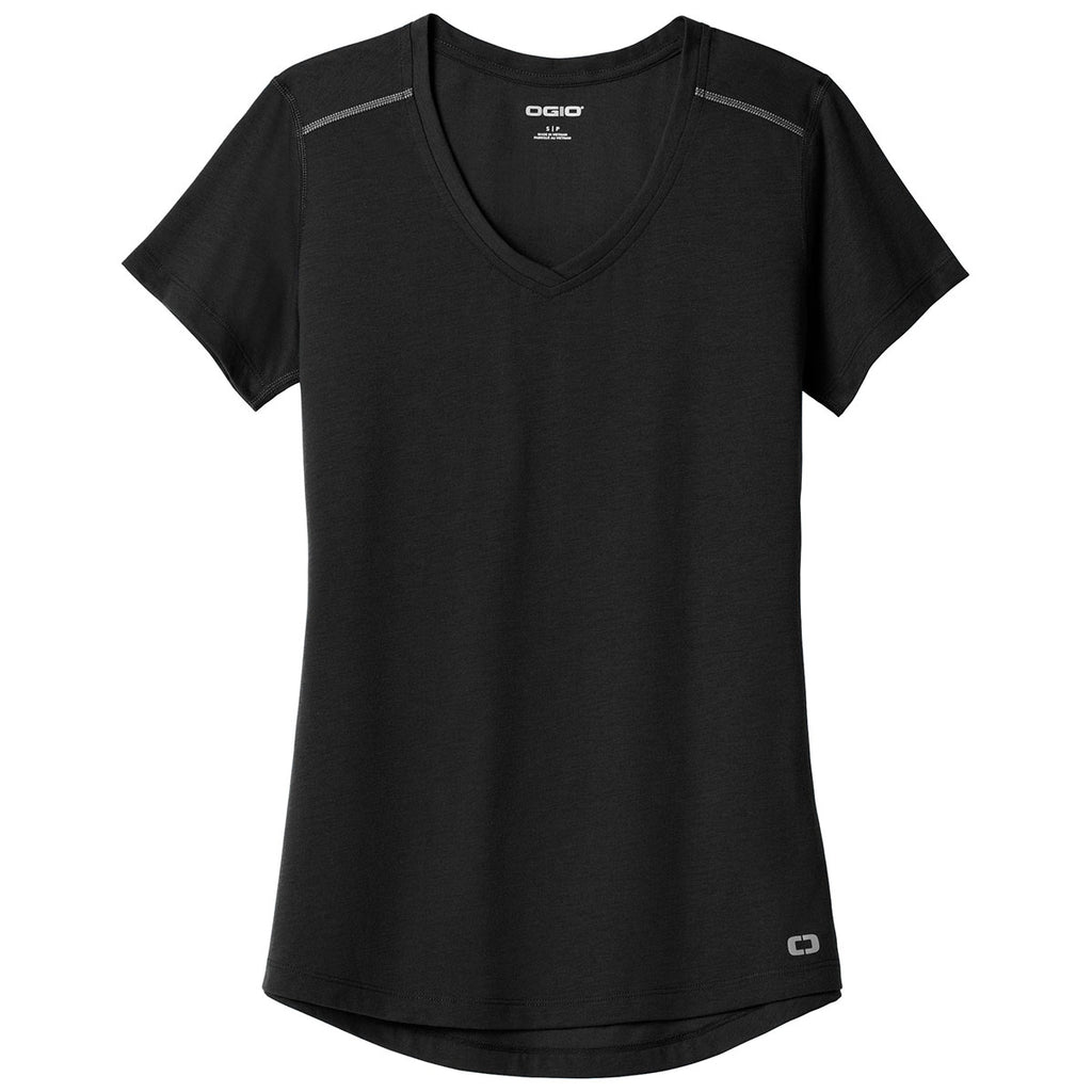 Enjoy peek fashion performance by handing out the embroidered OGIO Endurance Women's Blacktop Peak V-Neck Tee at the next corporate recruiting event. Flatlock seams deliver optimal comfort for a tee designed with a blend of polyester and cotton. Rugged polyester resists rips and tears to keep the tee in mint condition for years to come. Reflective taping strategically placed under the flat lock stitching at the shoulders lets motorists see you jogging or riding a bicycle at night. Add a custom logo on the screen printed area to set the marketing tone at the next professional networking event.