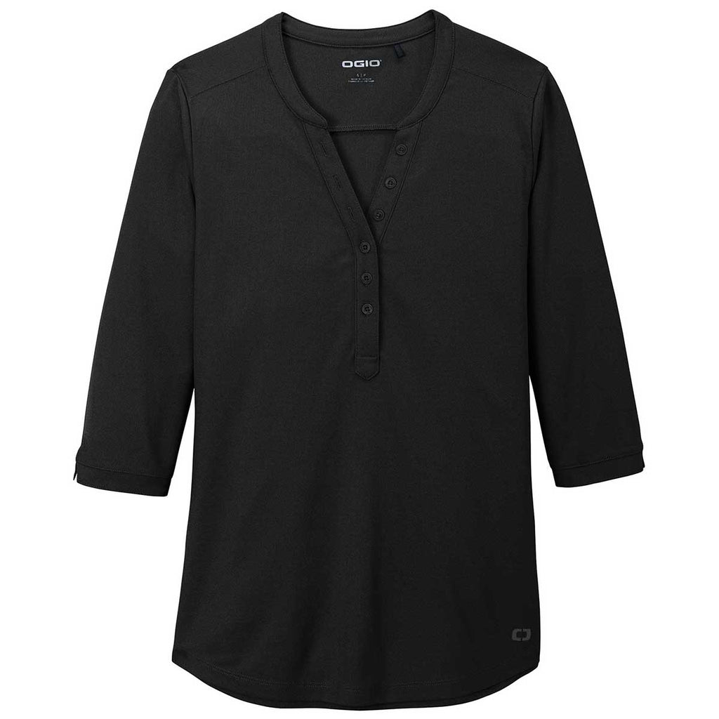 Layered or alone the custom embroidered OGIO Women's Blacktop Jewel Henley is top of the line. Add a custom logo to use this to share your company and brand at corporate events without losing the necessary style. The 100% poly pique offers stay cool wicking technology for those tough days at the office, and the 6 button placket with matching buttons keeps you looking great under pressure. Add an embroidery of your choosing to offer this henley as an end of the year gift for friends, family, or co-workers. Stand out in this gorgeous top that will be an instant hit.
