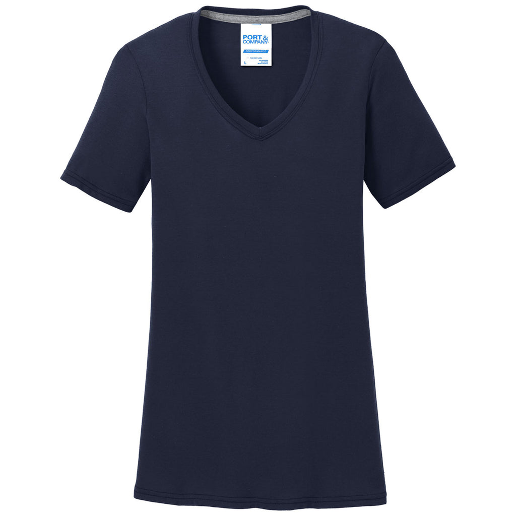 Port & Company Women's Deep Navy Performance Blend V-Neck Tee