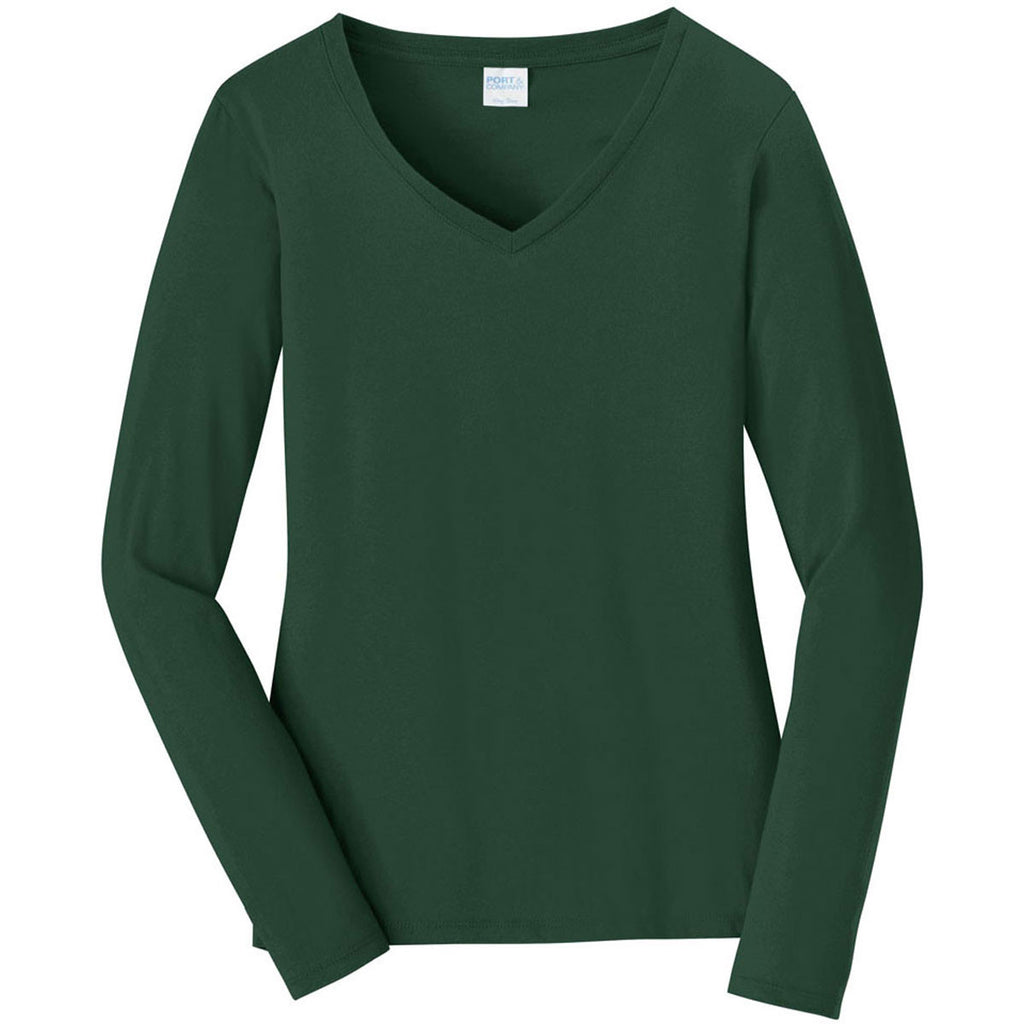 Do moisture laden t-shirts bog you down whenever you need to ramp up the competitive juices? Port & Company Women's Forest Green Long Sleeve Fan Favorite V-Neck Tee contain moisture wicking technology that quickly evaporates perspiration the instant it forms on your skin. The result is a cooling of the skin that invigorates your body. Set-in sleeves allow for more arm movement, which comes in handy on the golf course and tennis court. The super soft fabric endures countless wash and dry cycles, without any of the colors fading. One-hundred percent rugged polyester interlock resists rips and tears. Attach your company logo to the t-shirts to spread the word about your brand.Highlights