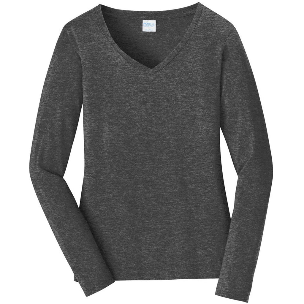 Port & Company Women's Dark Heather Grey Long Sleeve Fan Favorite V-Neck Tee