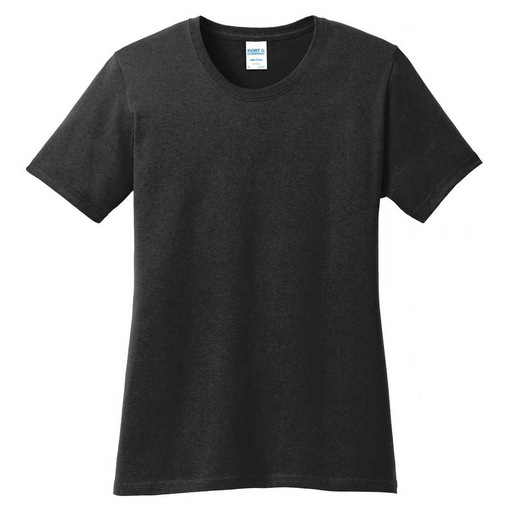 Decked out in a solid hue and flaunting a flattering fitted silhouette, this ultra-soft crewneck t-shirt adds a comfortable layer to your favorite ensembles. Crafted from lightweight, breathable 100% cotton. Available at a wallet-friendly price, this summer staple tee is a perfect solution to bulk corporate giveaways by customizing it with your company logo and/or message on it. Using a personalized version of this Port & Company Women's Jet Black Core Cotton Tee as uniform will develop a sense of brand consistency and credibility.Corresponding Men's Style: Port & Company Men's Jet Black Core Cotton Tee