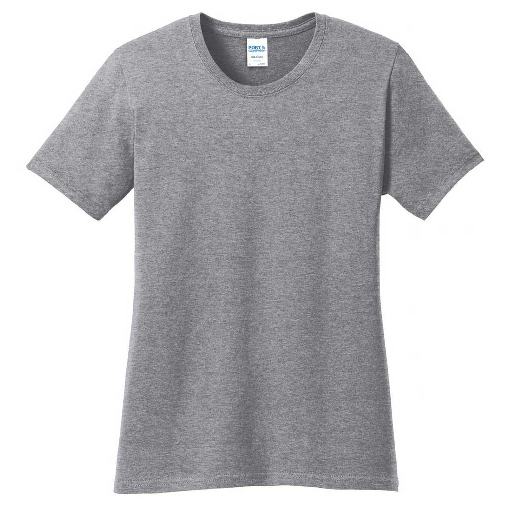 Decked out in a solid hue and flaunting a flattering fitted silhouette, this ultra-soft crewneck t-shirt adds a comfortable layer to your favorite ensembles. Crafted from lightweight, breathable 100% cotton. Available at a wallet-friendly price, this summer staple tee is a perfect solution to bulk corporate giveaways by customizing it with your company logo and/or message on it. Using a personalized version of this Port & Company Women's Athletic Heather Core Cotton Tee as uniform will develop a sense of brand consistency and credibility.