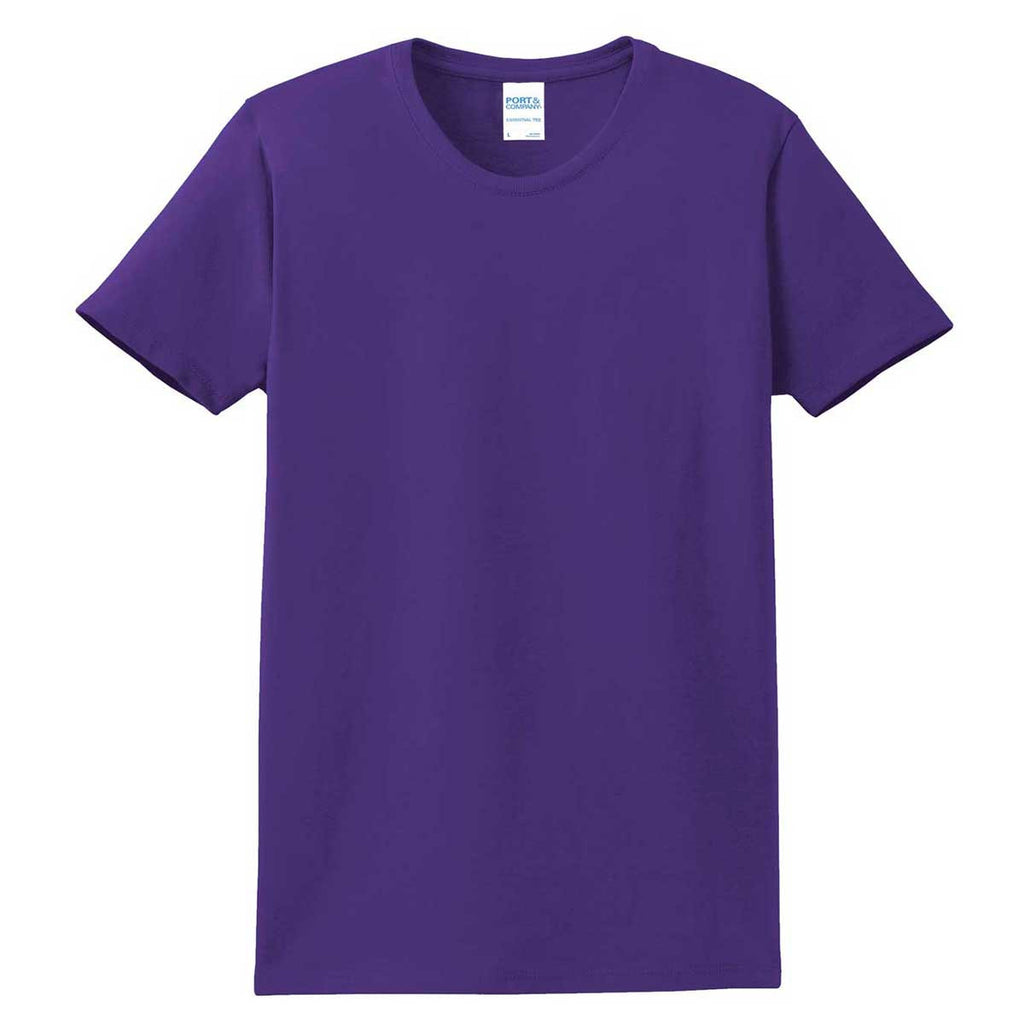 A perennial favorite, this Port & Company Women's Purple Essential Tee is crafted from lightweight, soft-spun cotton. Declared as "most popular" by groups and teams across America. Features a shorter midriff and sleeves for a more feminine fit. Emblazon this crew neck tee with your company's logo or message to gift it to your clients as a corporate give-away or a summer uniform staple for your employees. Either way, it will help your company or organization stand out and create an impactful brand identity.Highlights