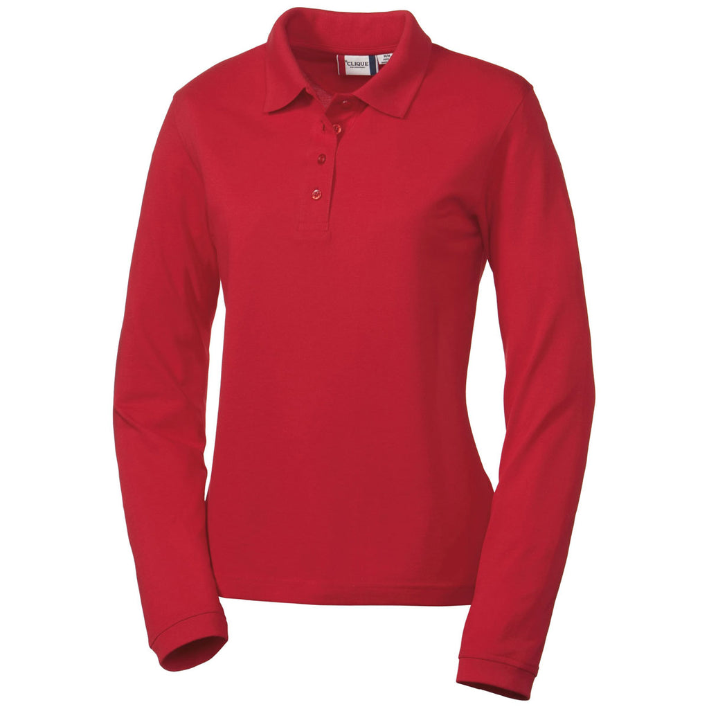 As company apparel that makes the perfect employee uniform, the corporate logoed Clique Women's Red Long Sleeve Elmira Polo comes with a stylishly narrow four-button placket that presents a professional appearance in the field. Spandex woven into the knit collar produces improved shape retention to withstand prolonged exposure to hot, humid weather conditions. Attach a custom logo on the large embroidery area to create a cost effective way to promote your products and services. Side vents allow air to circulate near the body and evaporate discomforting moisture. Wear the polo to work and keep it on later in the day when you meet friends for dinner.Corresponding Men's Style: Clique Men's Red Long Sleeve Evans