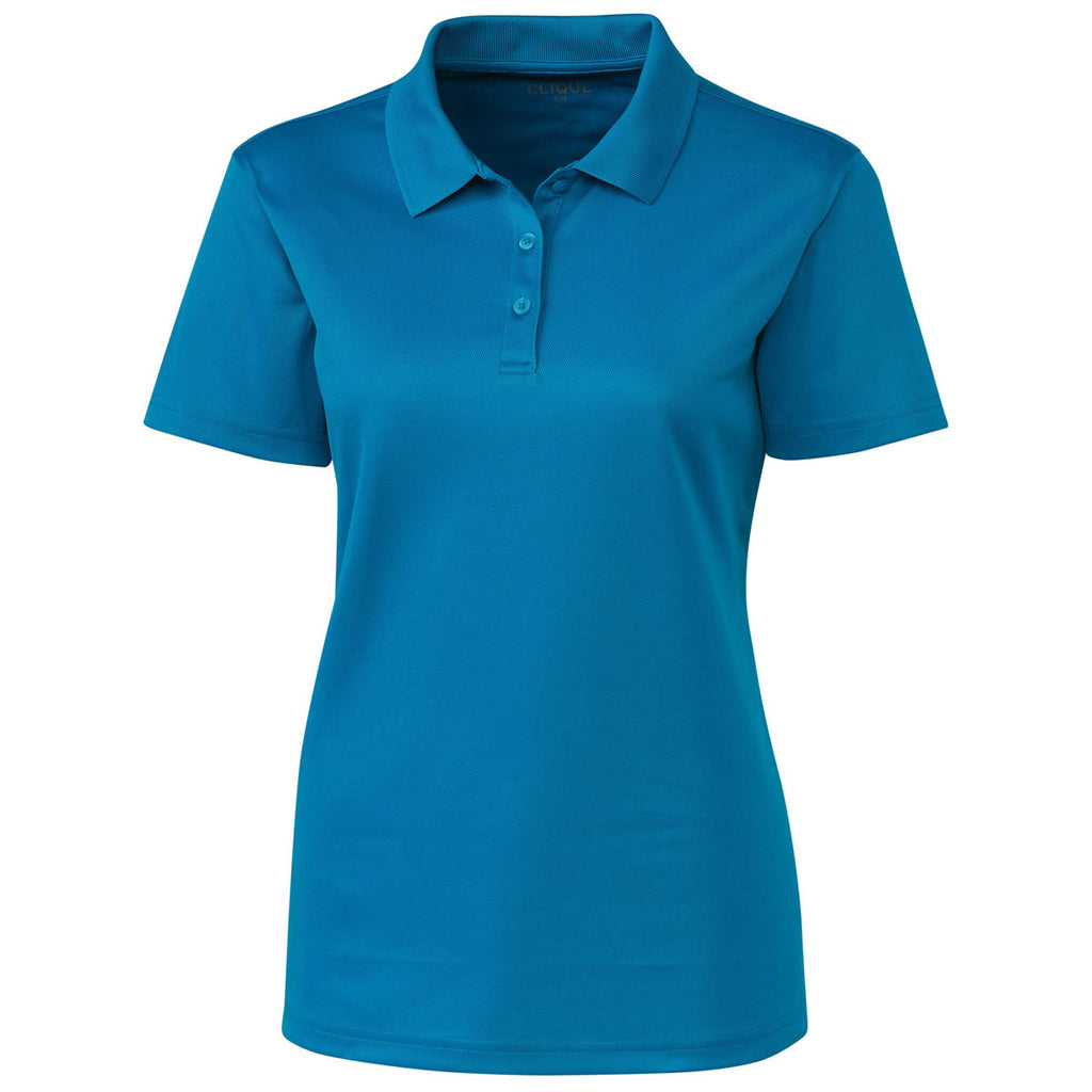 Dazzle your golf partners not only with your game, but also your fine taste in company apparel by wearing the Clique Women's Ocean Blue Spin Pique Polo. Versatile enough to wear at work and after work at your favorite restaurant, the stylish polo includes a large embroidery area for attaching your corporate logo. With a company logo, you stir interest in your products and services at professional networking events. The 100% spin-dye polyester pique polo withstands the punishment delivered by active lifestyles. Forward shoulders complement the rib knit collar to define what elegant, yet functional fashion should look like.Corresponding Men's Style: Clique Men's Ocean Blue Spin Pique Polo
