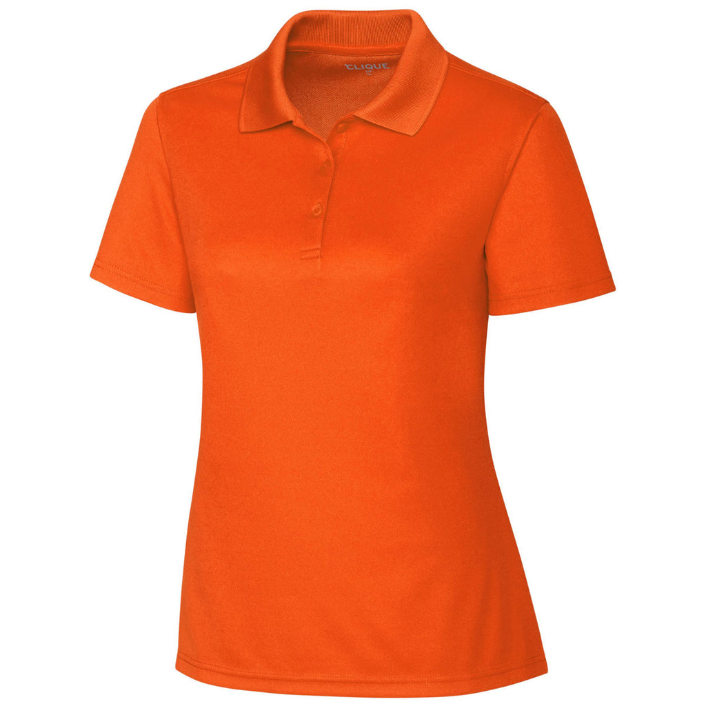 Dazzle your golf partners not only with your game, but also your fine taste in company apparel by wearing the Clique Women's Orange Spin Pique Polo. Versatile enough to wear at work and after work at your favorite restaurant, the stylish polo includes a large embroidery area for attaching your corporate logo. With a company logo, you stir interest in your products and services at professional networking events. The 100% spin-dye polyester pique polo withstands the punishment delivered by active lifestyles. Forward shoulders complement the rib knit collar to define what elegant, yet functional fashion should look like.Corresponding Men's Style: Clique Men's Orange Spin Pique Polo