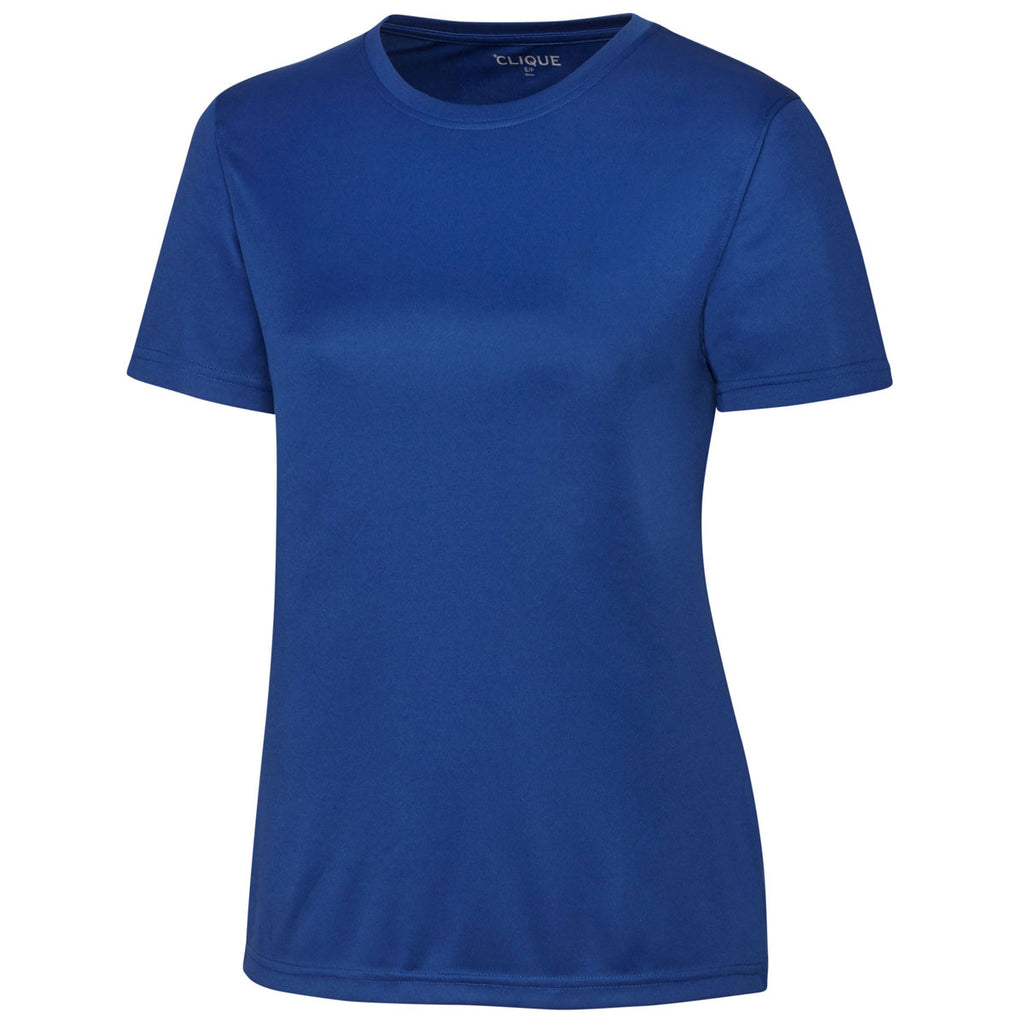 At the next company sponsored golf tournament, hand out the Clique Women's Tour Blue Spin Jersey Tee to the female members of your accomplished team. Long lasting color makes the tee perfect for frequent use in a wide variety of competitive athletic events. Designed with 100% spin-dye polyester interlock, the tee handles all of the punishment thrown at it. Add a custom logo to send the message your company stands behind high quality products and services. Open sleeves allow you to rear back and let it rip from the tees and fairways. Self-fabric neck trip adds panache to an already fashionable short sleeve shirt.