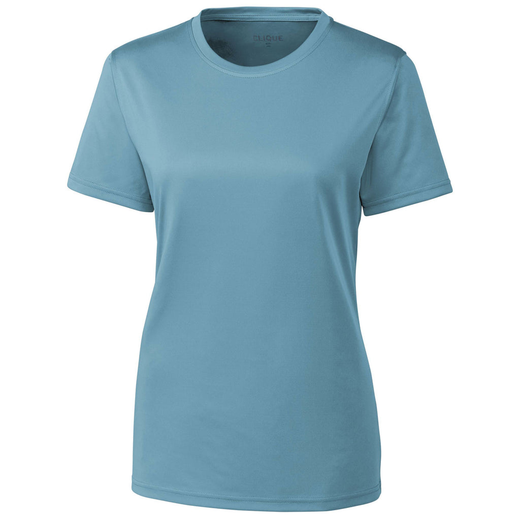 At the next company sponsored golf tournament, hand out the Clique Women's Dusty Blue Spin Jersey Tee to the female members of your accomplished team. Long lasting color makes the tee perfect for frequent use in a wide variety of competitive athletic events. Designed with 100% spin-dye polyester interlock, the tee handles all of the punishment thrown at it. Add a custom logo to send the message your company stands behind high quality products and services. Open sleeves allow you to rear back and let it rip from the tees and fairways. Self-fabric neck trip adds panache to an already fashionable short sleeve shirt.
