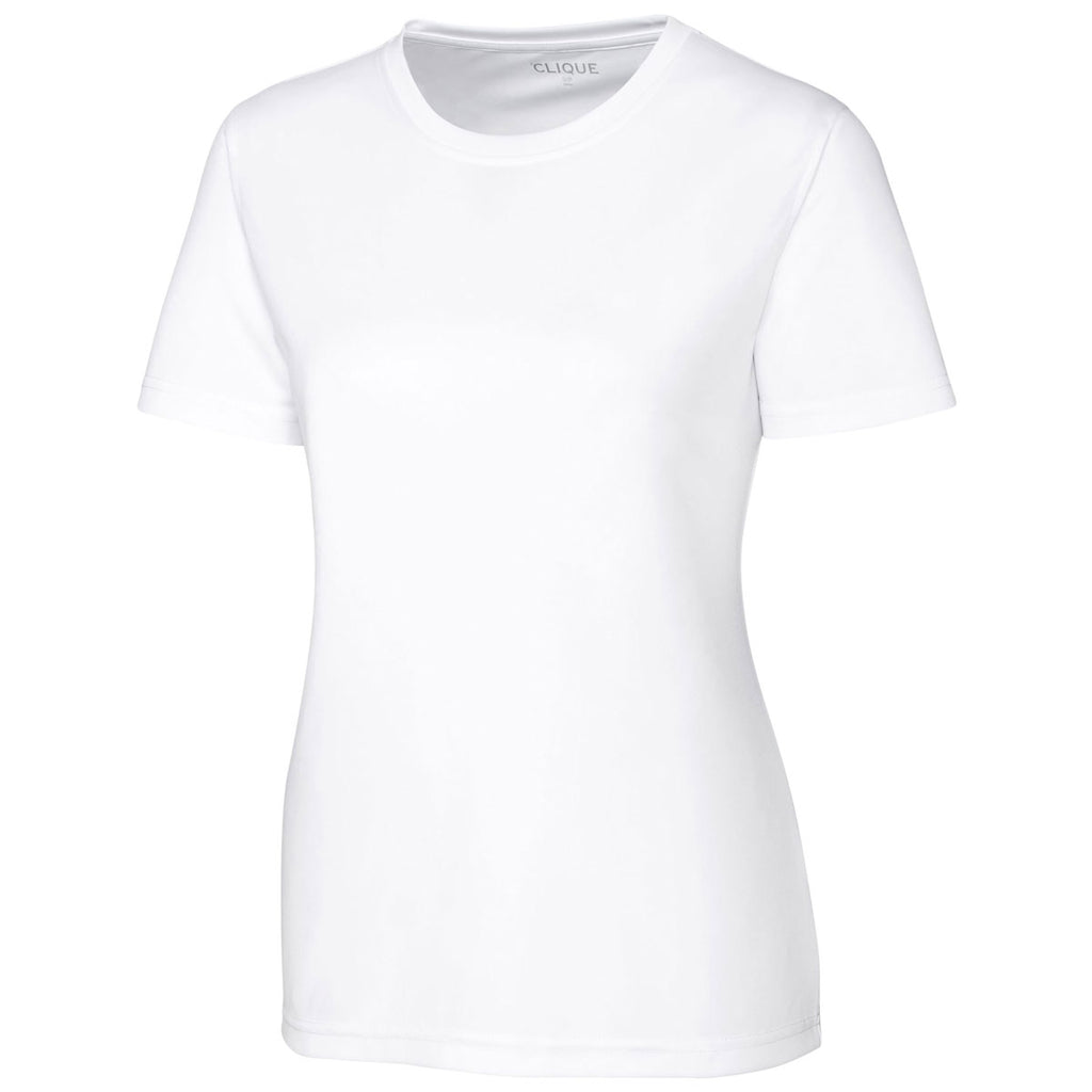 At the next company sponsored golf tournament, hand out the Clique Women's White Spin Jersey Tee to the female members of your accomplished team. Long lasting color makes the tee perfect for frequent use in a wide variety of competitive athletic events. Designed with 100% spin-dye polyester interlock, the tee handles all of the punishment thrown at it. Add a custom logo to send the message your company stands behind high quality products and services. Open sleeves allow you to rear back and let it rip from the tees and fairways. Self-fabric neck trip adds panache to an already fashionable short sleeve shirt.Corresponding Men's Style: Clique Men's White Spin Jersey Tee