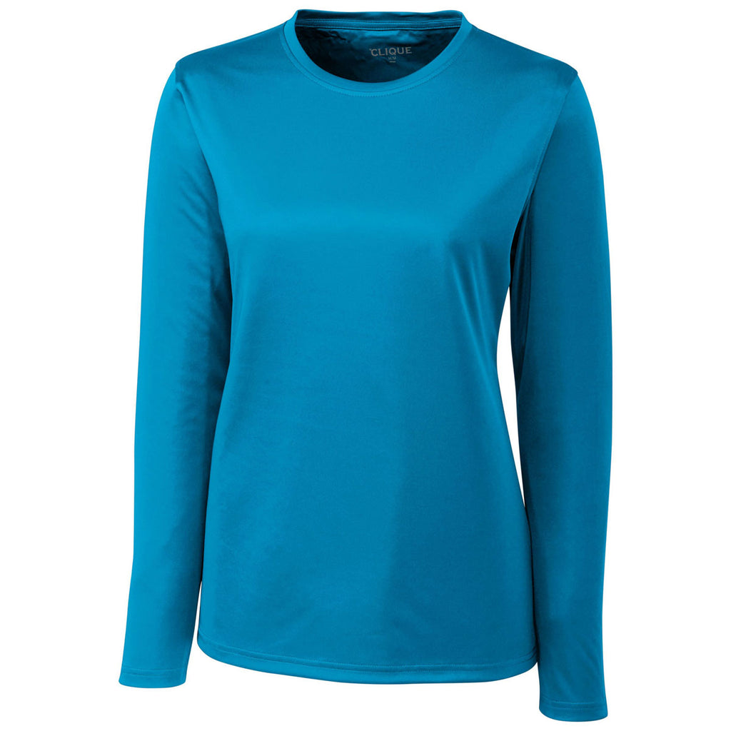 Worn as standalone company apparel or the first layer for a cold weather ensemble, the Clique Women's Ocean Blue Long Sleeve Spin Jersey Tee offers the ultimate in fashion flexibility. Designed with 100% spin dye polyester interlock, the durable tee is perfect for wearing during sporting competitions. Screen print your corporate logo to let everyone know your company places value in offering high quality products and services. The fully taped neck seam resists rips and tears to deliver tremendous apparel performance for years to come. Show off the rib cuffs to demonstrate your fine fashion taste in employee uniforms.Corresponding Men's Style: Clique Men's Ocean Blue Long Sleeve Spin Jersey Tee