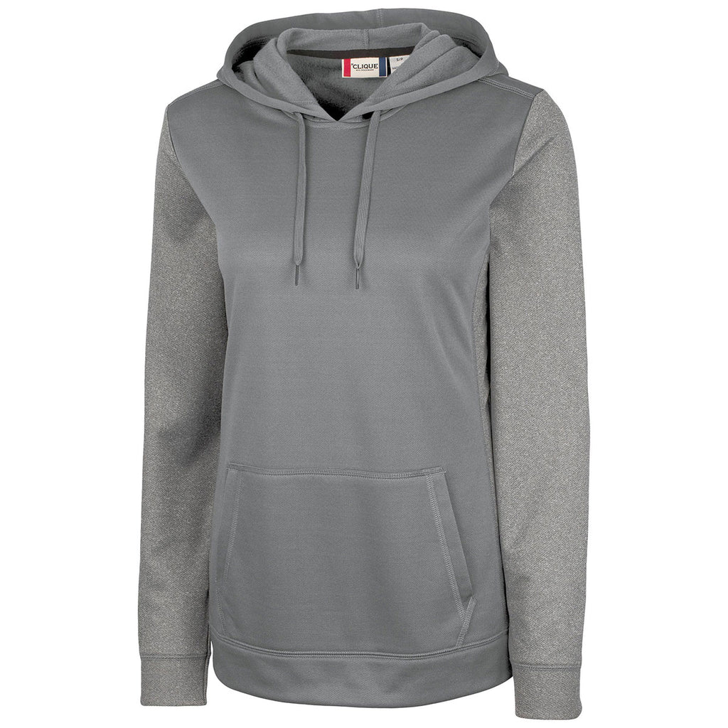 The Clique Women's Titan Helsa Sport Colorblock Pulloveroffers stylish comfort that can have a custom logo added to the front. Choose from unique color options and enjoy product features including a 100% polyester fleece material, attached hood with drawstring, long sleeve cuffs in heather fabric, and a kangaroo pocket. This pullover sweatshirt makes an ideal corporate apparel gift to hand out at golf events or trade shows. You can even purchase some for your employees and hand these out as employee apparel.Corresponding Men's Style:Clique Men's Titan Helsa Sport Colorblock Pullover