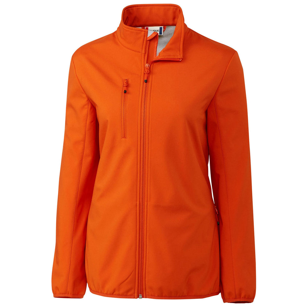 A touch of spandex makes the company logoed Clique Women's Blood Orange Trail Softshell perfect for professionals that spend plenty of time outdoors working and playing. Enjoy enhanced mobility, as you cut down tree limbs for a home improvement project or set up a tent for a weekend camping trip. The highly breathable softshell jacket quickly removes moisture to deliver supreme all day comfort. Add a custom logo on the large embroidery area for setting the marketing tone at the next sales conference. The mostly polyester fabric resists rips and tears to give you a softshell jacket that lasts for years to come.Corresponding Men's Style: Clique Men's Blood Orange Trail Softshell