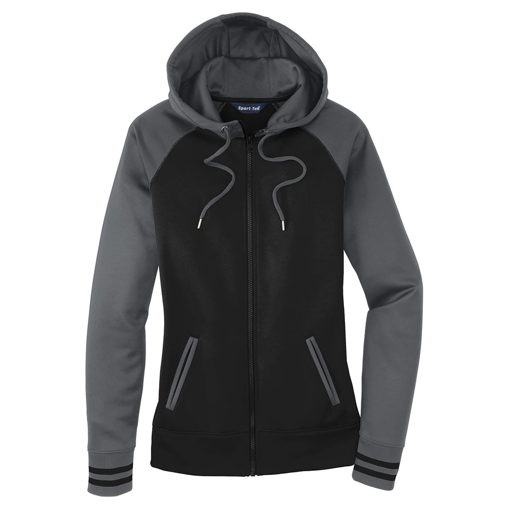 Sport-Tek Women's Black/Dark Smoke Grey Sport-Wick Varsity Fleece Full-Zip Hooded Jacket