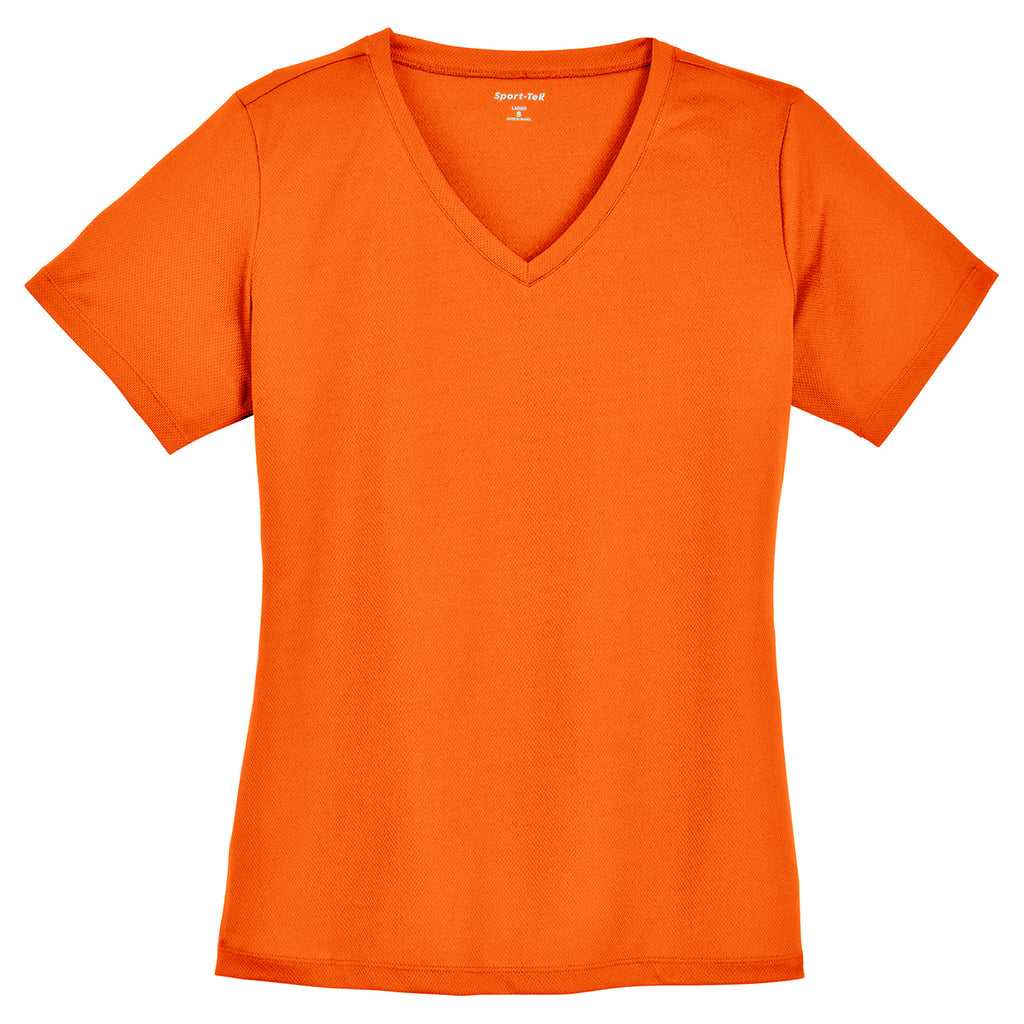 Sport-Tek Women's Neon Orange PosiCharge RacerMesh V-Neck Tee
