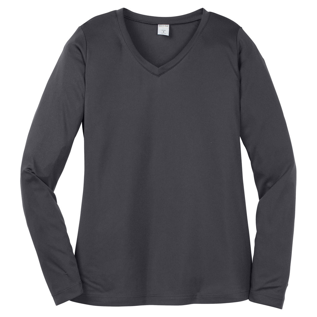 Sport-Tek Women's Iron Grey Long Sleeve PosiCharge Competitor V-Neck Tee