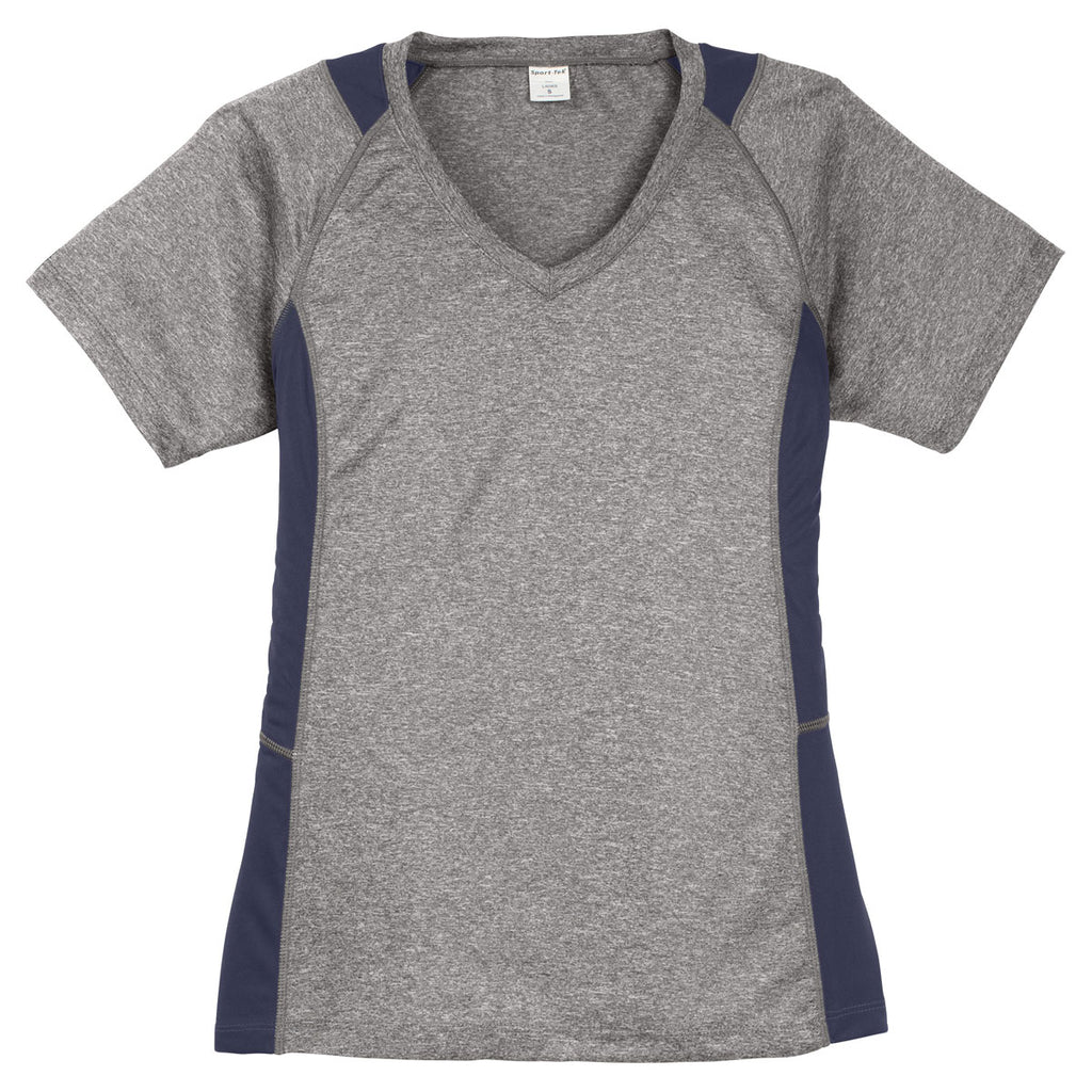 Sport-Tek Women's Vintage Heather/True Navy Heather Colorblock Contender V-Neck Tee