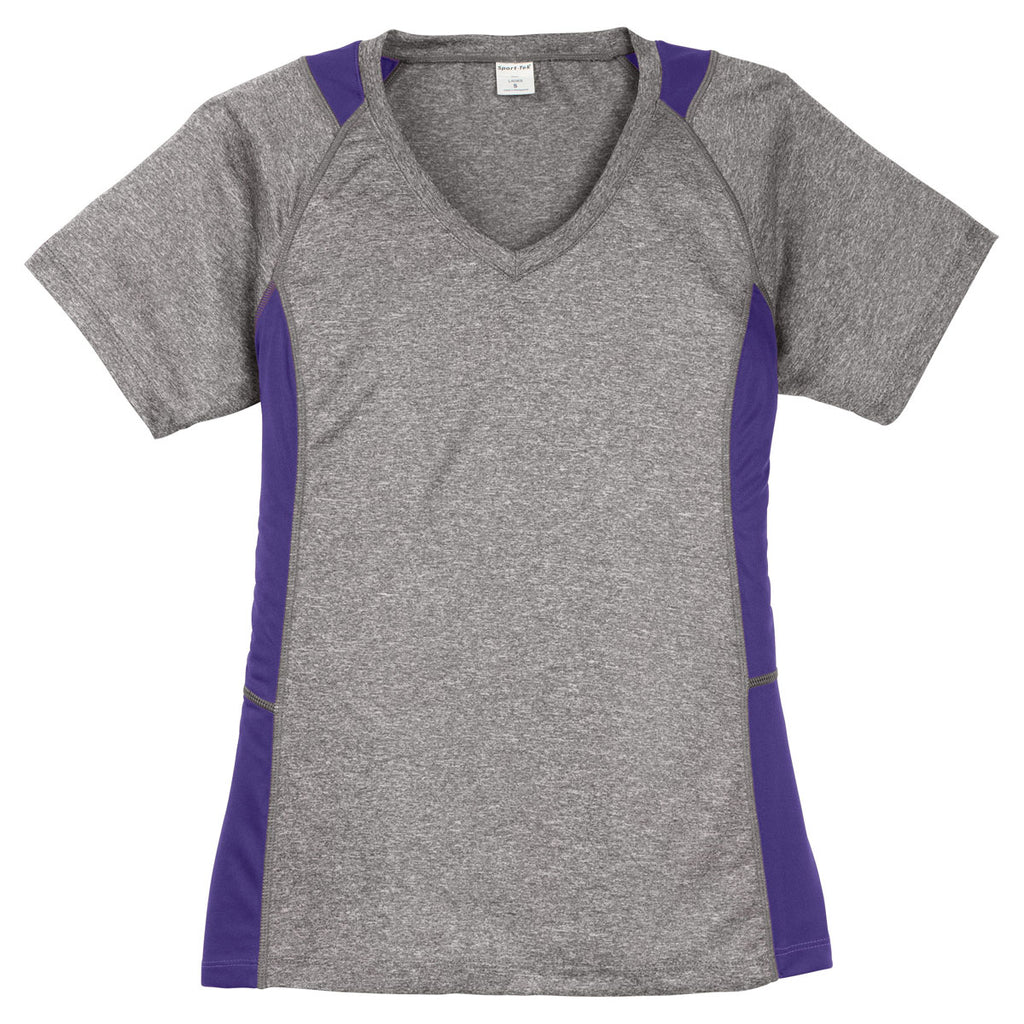Be honest: if there was only one type of upper-body clothing you could bring to a desert island with you, it would be a T-shirt. And it'd probably look something like Sport-Tek Women's Vintage Heather/Purple Heather Colorblock Contender V-Neck Tee. That's especially true for businesses who need to create some business apparel from items that will enhance their corporate brand.