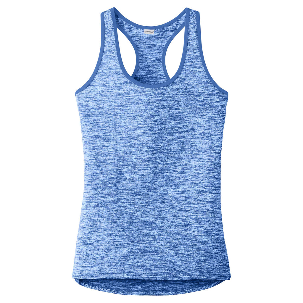The custom printed Sport-Tek Women's True Royal PosiCharge Electric Heather Racerback Tank is great for your next company giveaway. Rugged polyester resists the types of rips and tears that turn other styles of tanks into dust rags. Snag resistant to prevent fabric fraying, the versatile tank works fashionably well at an outdoor corporate event and when you hit the gym after work. Attach a custom logo on the large imprint area to create more awareness for your company at industry sponsored recreational events. Your employees will enjoy receiving something new and interesting in the next corporate apparel giveaway.Highlights