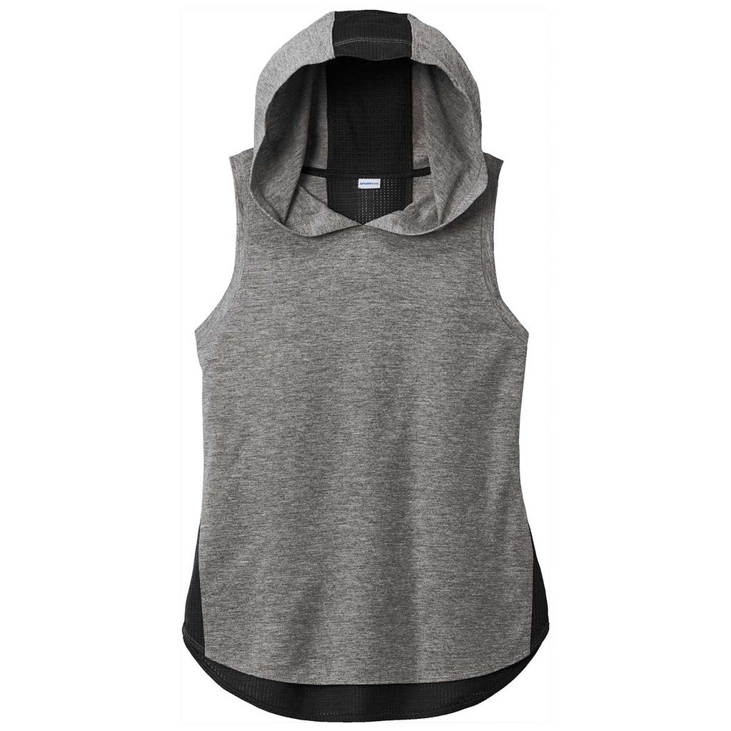 Sport-Tek Women's Black/Dark Grey Heather PosiCharge Tri-Blend Wicking Draft Hoodie Tank
