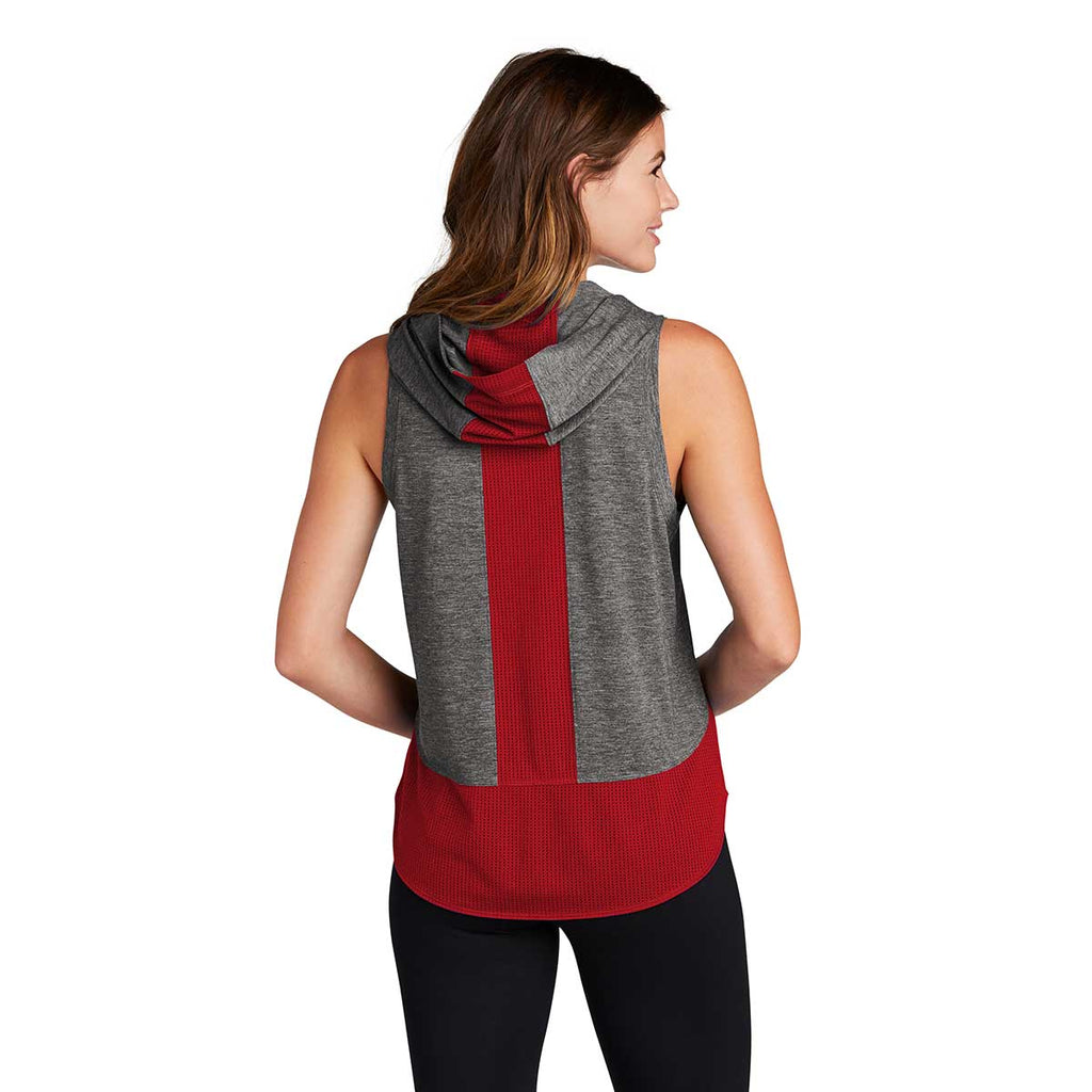 Sport-Tek Women's True Red/Dark Grey Heather PosiCharge Tri-Blend Wicking Draft Hoodie Tank