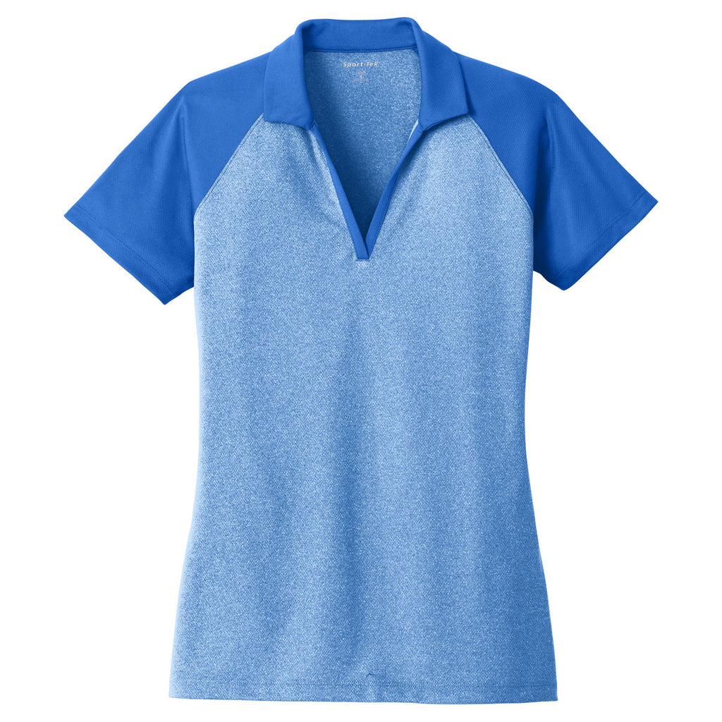 Corresponding Men's Style: Sport-Tek Men's True Royal Heather/True Royal PosiCharge RacerMesh Raglan Heather Block Polo