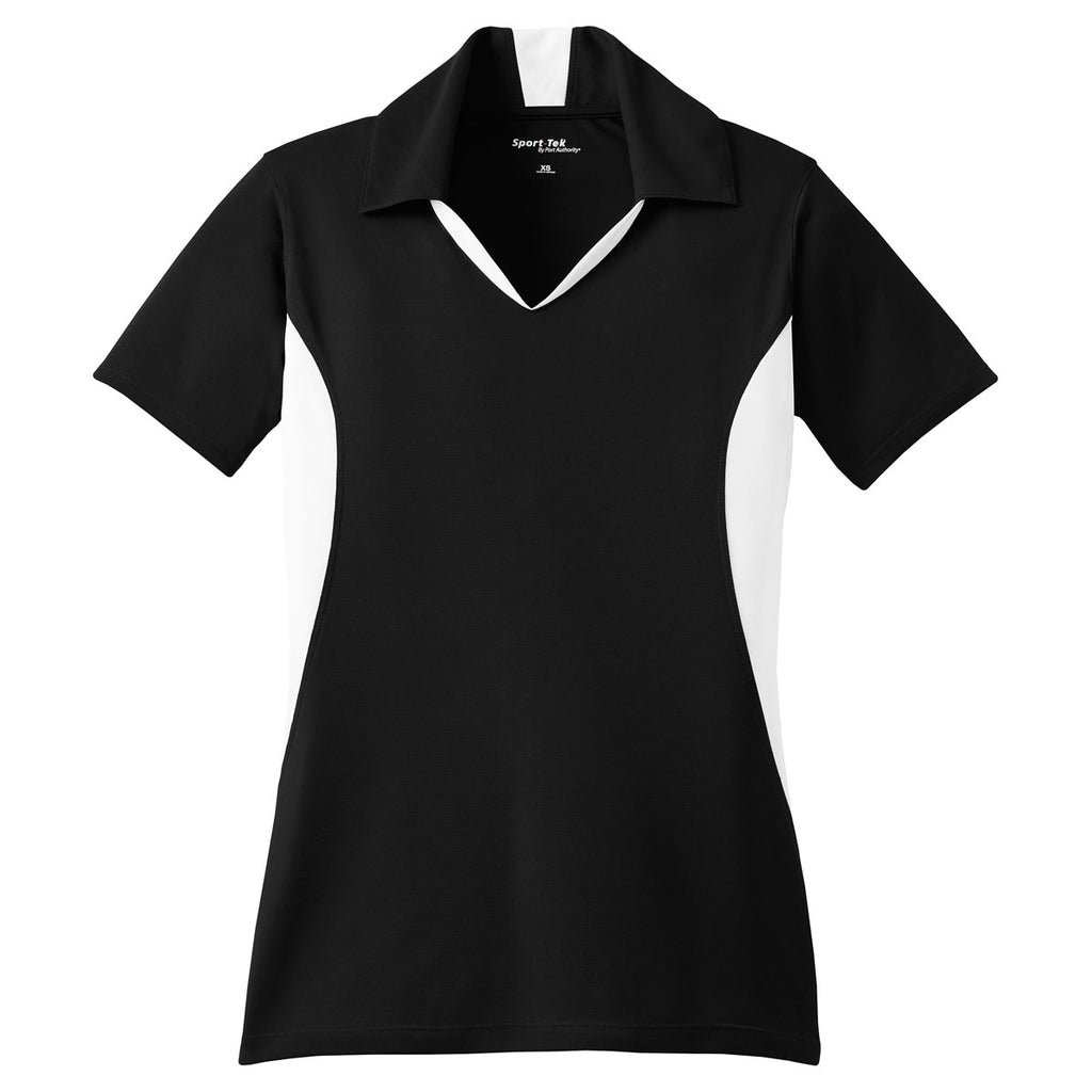 Sport-Tek Women's Black/White Side Blocked Micropique Sport-Wick Polo