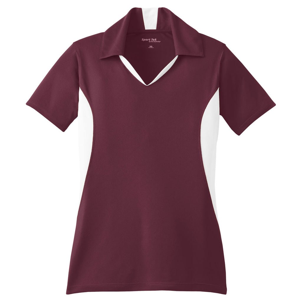 Sport-Tek Women's Maroon/White Side Blocked Micropique Sport-Wick Polo