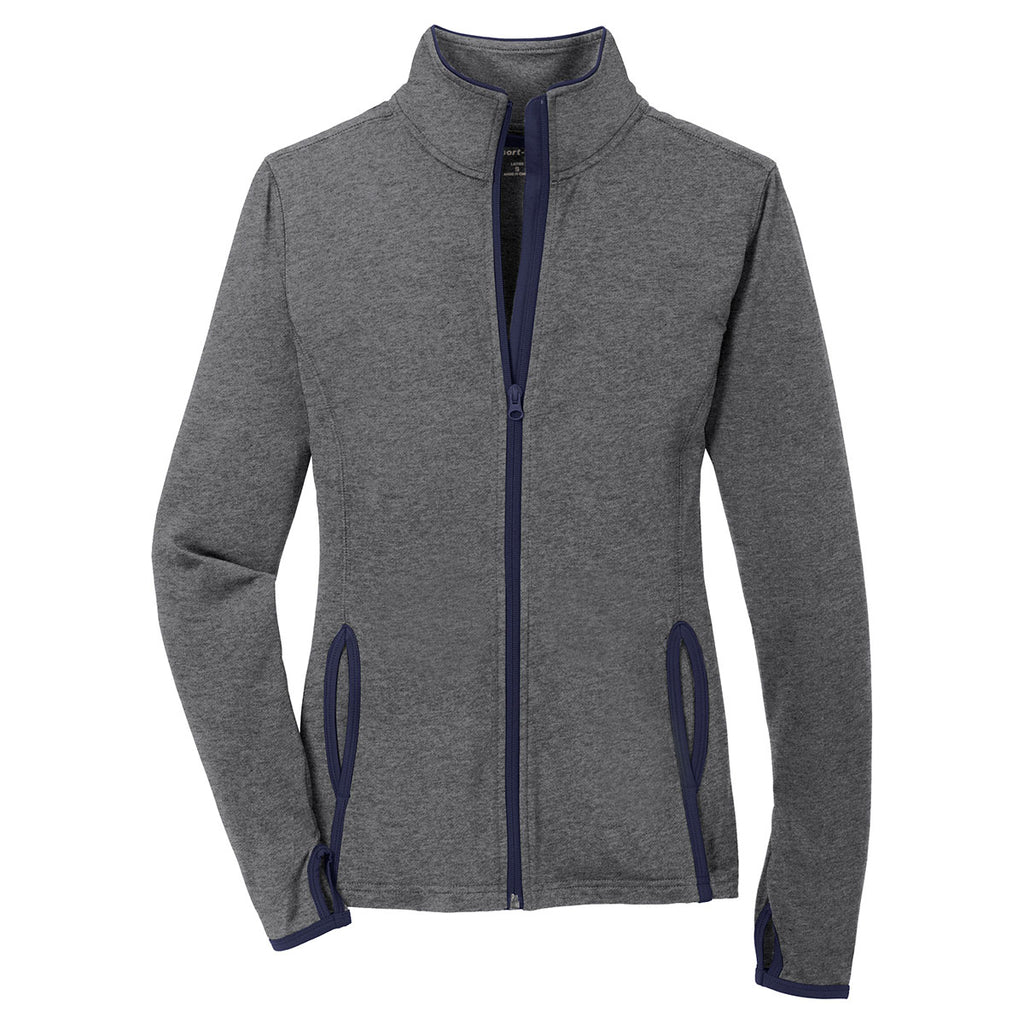 Sport-Tek Women's Charcoal Grey Heather/True Navy Sport-Wick Stretch Contrast Full-Zip Jacket