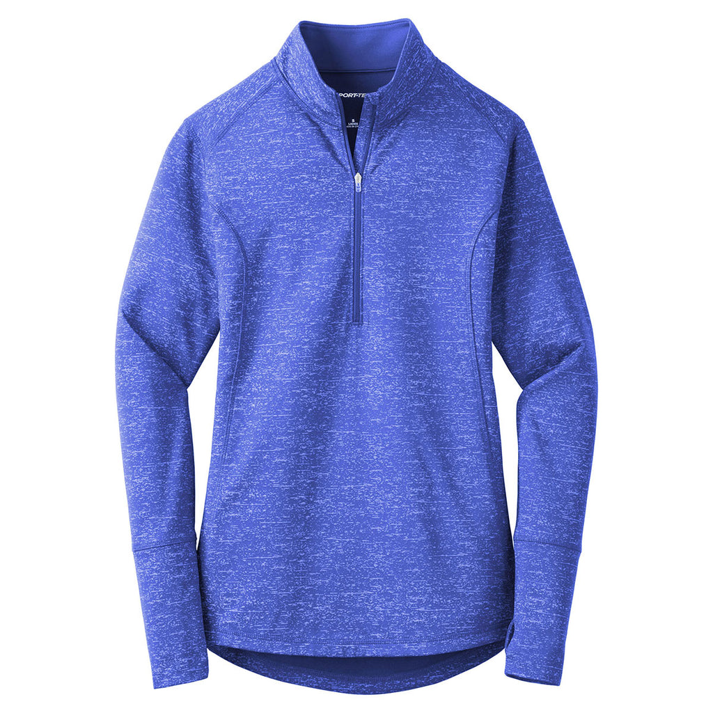 Give away the embroidered Sport-Tek Women's True Royal Sport-Wick Stretch Reflective Heather 1/2-Zip Pullover to the hard working members of your team. The women on your company team will appreciate a pullover that works as well as an outer layer, as it works as the middle layer of a winter fashion ensemble. Designed with 100% polyester, the pullover resists rips and tears to deliver superior performance for years to come. Add your company logo on the large imprint area to advertise your brand at corporate events and around the community. The soft brushed backing keeps you feeling comfortable all day long.Corresponding Men's Style:Sport-Tek Men's True Navy Sport-Wick Stretch Reflective Heather 1/2-Zip Pullover