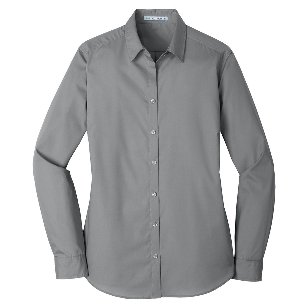 Port Authority Women's Gusty Grey Long Sleeve Carefree Poplin Shirt