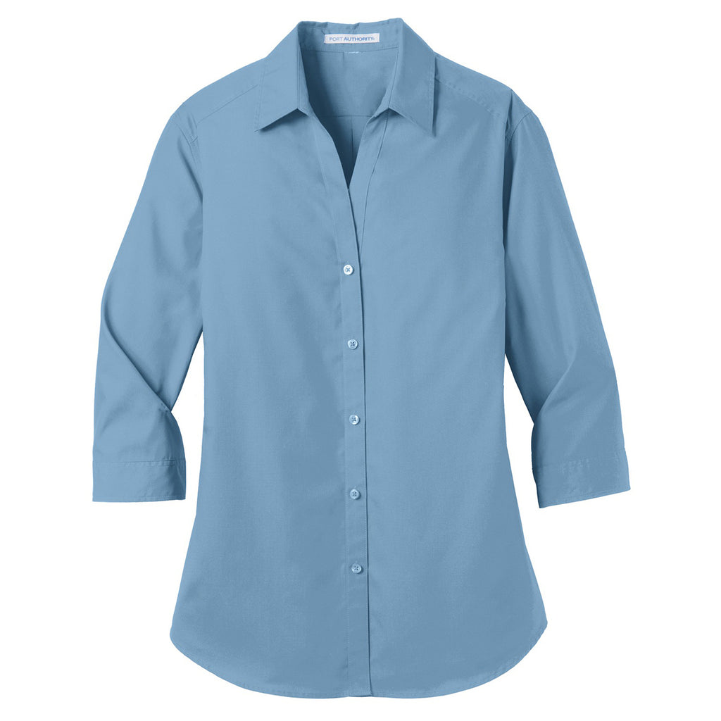 Port Authority Women's Carolina Blue 3/4-Sleeve Carefree Poplin Shirt