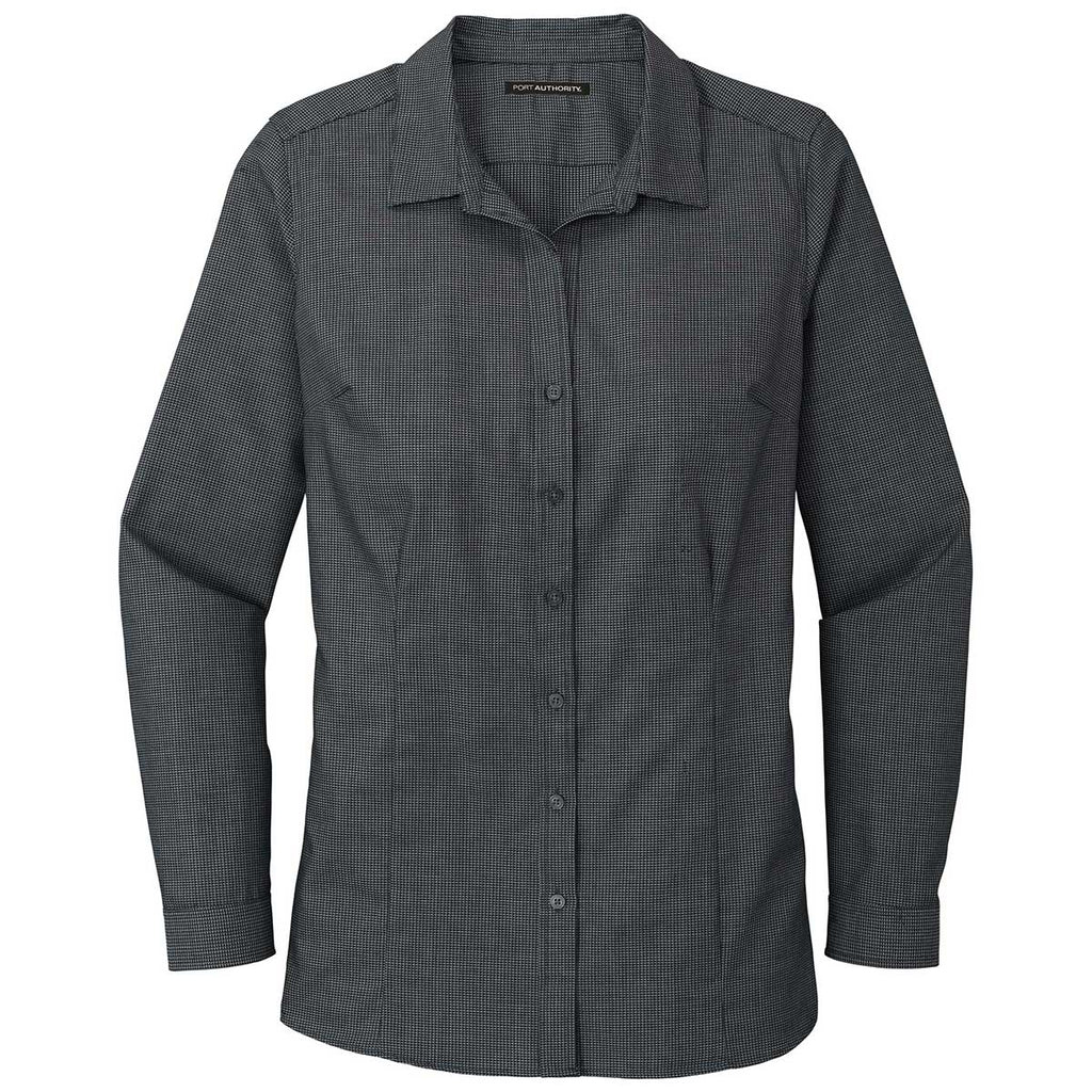 Port Authority Women's Black/Grey Steel Pincheck Easy Care Shirt