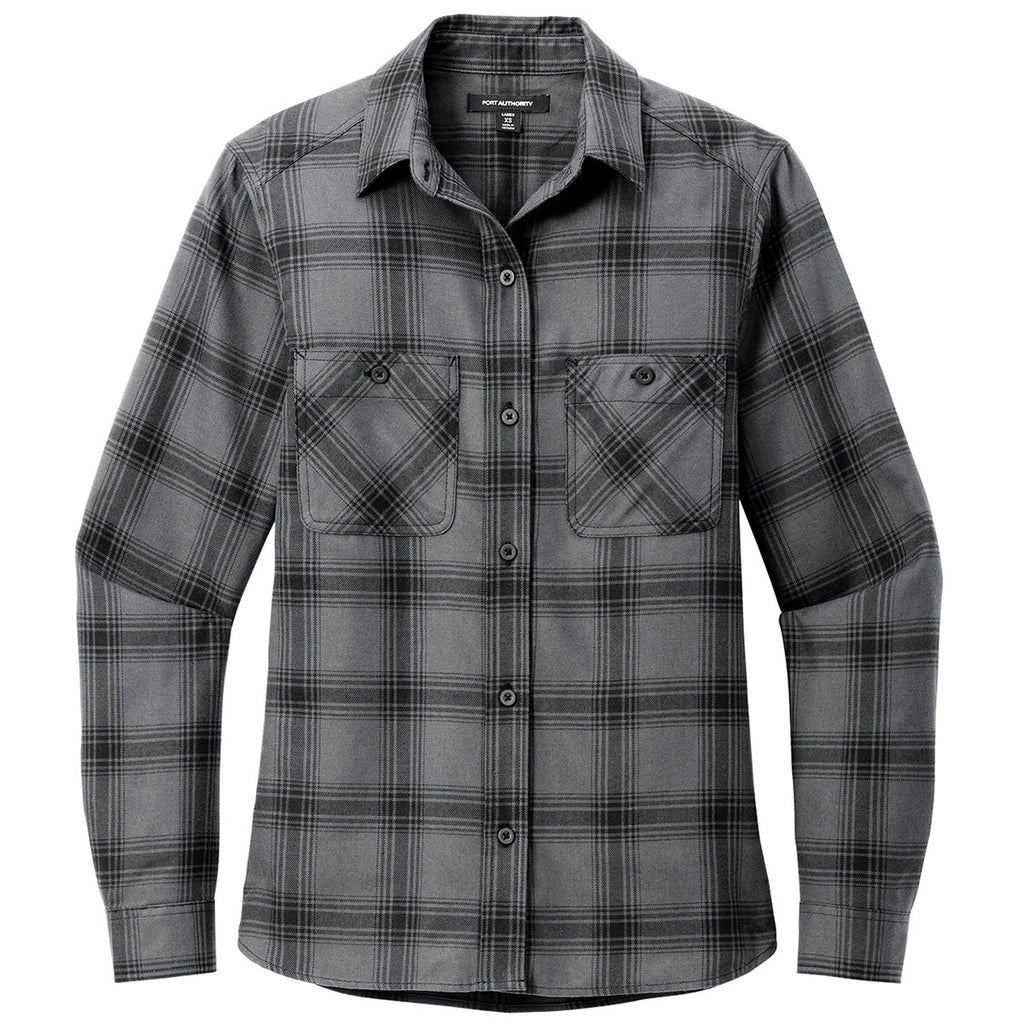 Port Authority Women's Grey/Black Open Plaid Plaid Flannel Shirt