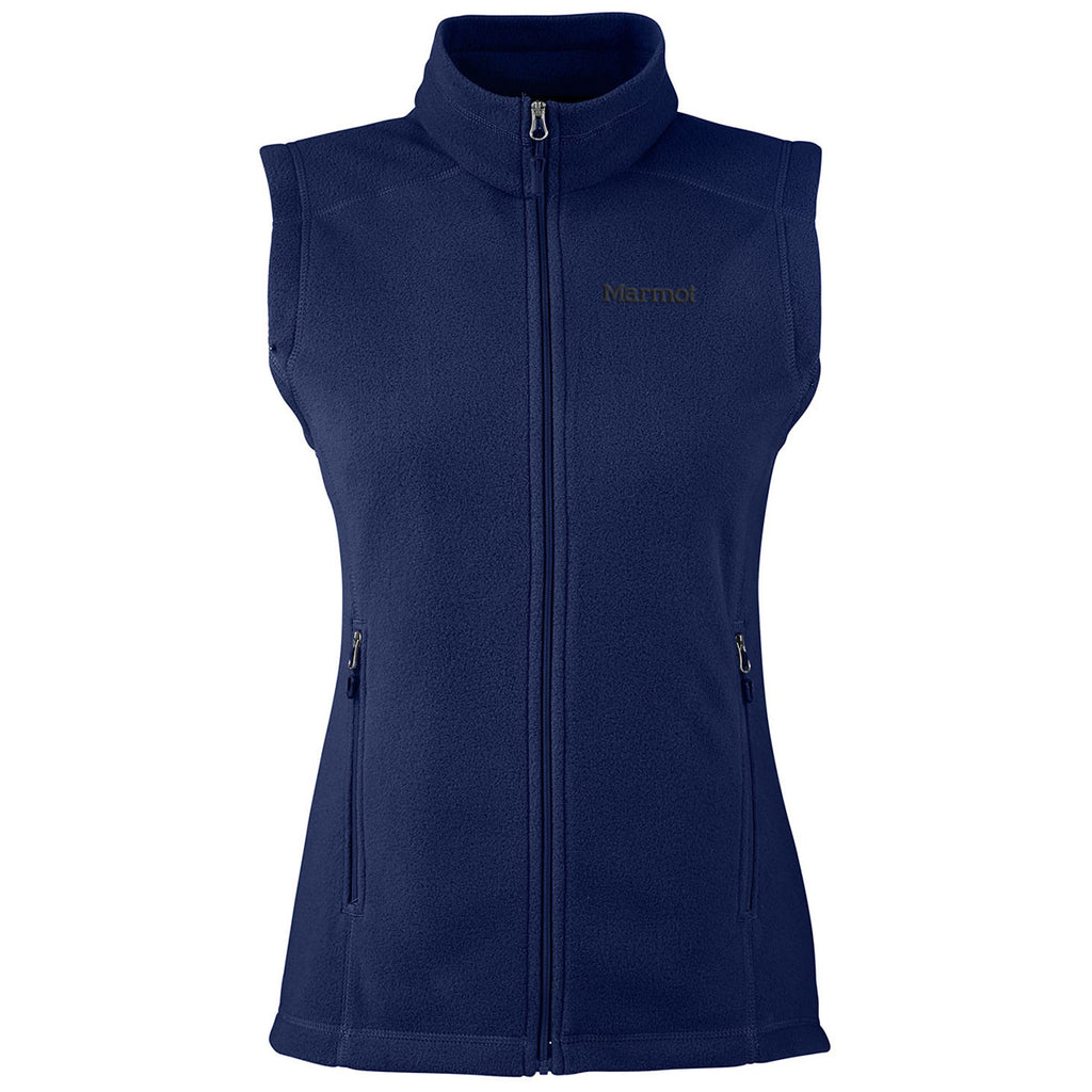 Design a corporate logo for the Marmot Women's Arctic Navy M2 Rocklin Vest to create a unique look for your crew. The vest is made of recycled materials, making it eco-friendly and easy to wear. It is perfect for a uniform look so that everyone is easy to recognize while hard at work. Place an order right away.This product can only ship within the United States and Canada.