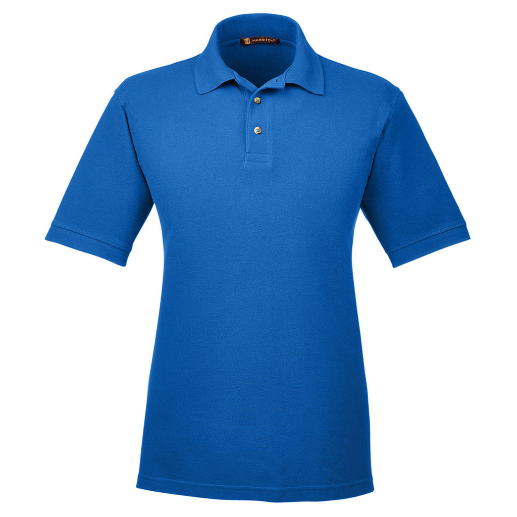 Enjoy the super soft feel of 100% ringspun cotton by wearing the Harriton Men's True Royal 6 oz. Ringspun Cotton Pique Short-Sleeve Polo. Designed to wear at work and after work for informal social events, the stylish polo includes top stitching throughout the fabric to ensure long lasting durability. Horn-style buttons add panache to the polo to make you stand out at a professional networking event. Use the shoulder rubbing affair to display the custom logo you added for enhanced company recognition. Hand the side seamed polos out to reward your team of dedicated employees.Corresponding Women's Style: Harriton Women's True Royal 6 oz. Ringspun Cotton Pique Short-Sleeve Polo